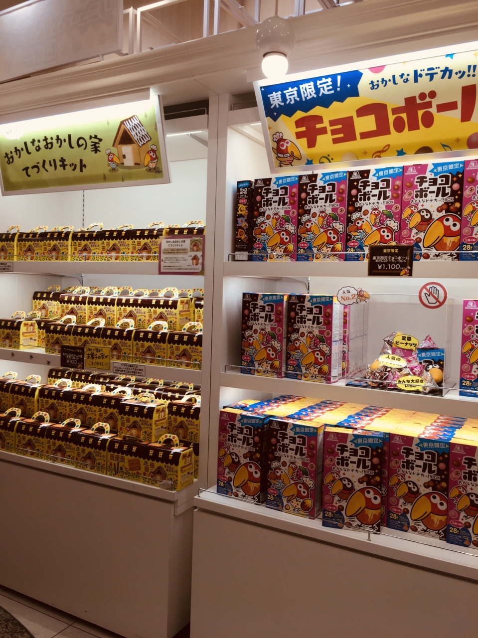 3社が固まった場所にあり、他にカルビー、グリコの店がありました。ハイチュウとチョコボールの商品がたくさんあって通じてサイズより大きなものもあり、土産には最適でした。箱が本の形になっている、東京おかしな本を購入しました。