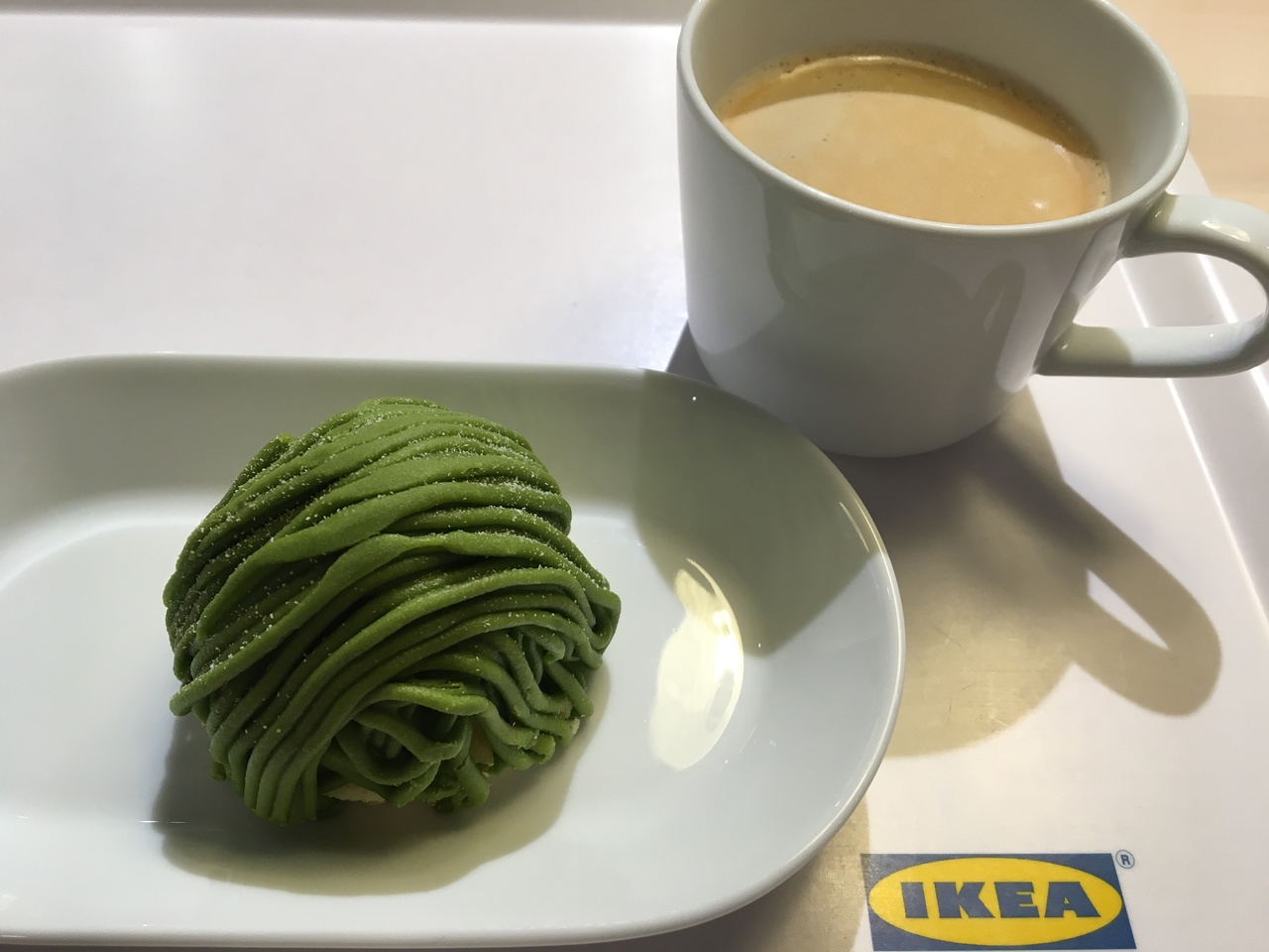家具を見にIKEA渋谷に行った際に、ひと休みしたくて7階にあるスウェーデンレストランへ立ち寄りました。ちょうど抹茶フェアをやっていて、抹茶のモンブランや抹茶ロールなどが290円とお手頃でした。コーヒーが一杯50円という破格なのもビックリでした。