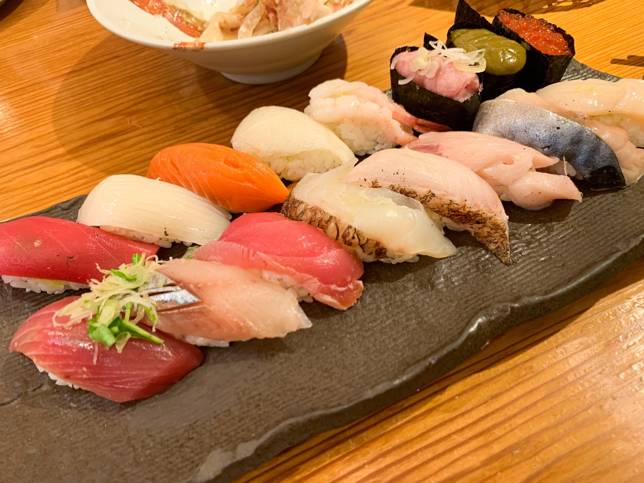店内は明るく落ち着いた雰囲気。メニューは寿司系だけでなく様々な一品系があり、色々と楽しめます。また寿司もネタが厚みがいい塩梅で食べ応えあり。
