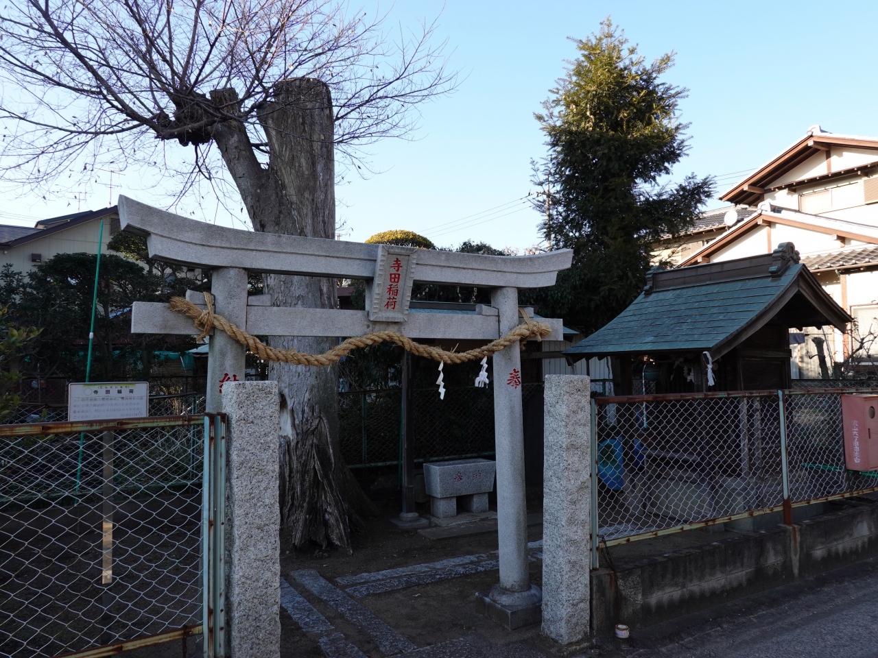 「一茶双樹記念館」「流山寺」などがある流山の天晴通り沿いにある小さな稲荷神社です。新選組ゆかりのお寺「長流寺」を参拝した際、すぐ近くにあったのであわせて訪問しました。小さな鳥居に小さな祠という小ぢんまりとした神社で、普通なら素通りしていたかもしれない目立たない存在です。文字が薄れて読みづらい案内書きによると、明治8年の大火災がこの場で止まり、2年後の明治10年に地元の有志で再建されたということです。