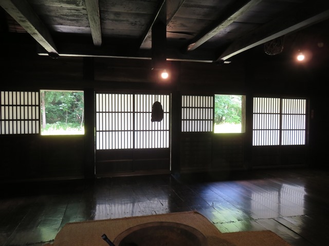合掌造りの天井から入る光の美しさと涼やかでひんやりした空気が心地いい空間作り出し、ハンモックの自然な揺れが印象的でした