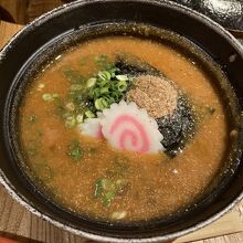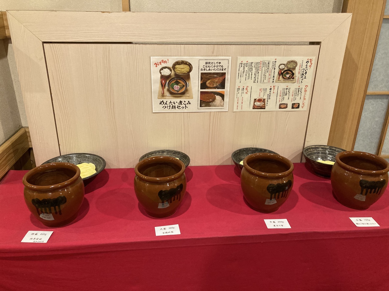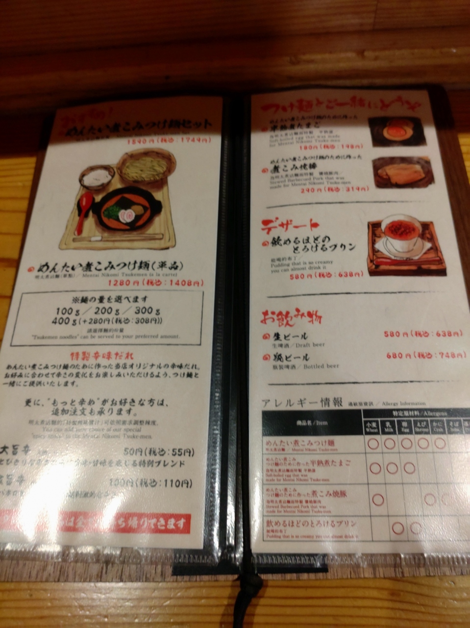 池袋駅南口、西武百貨店おむかえのビル2階にある明太子を使ったつけ麺専門店。博多・中洲にある明太子料理専門店で出している「めんたい煮こみつけ麺」に特化したお店で、池袋の他、大阪の千日前にもお店がある。お店はビルの外観からは想像できない和風の雰囲気で、テーブルには杉の木材を使用、BGMも琴の演奏。カウンター席とテーブル席があり、テーブル席はカップルや女性客も多い印象。