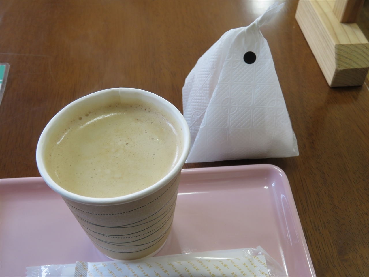 持ち帰りではないカフェラテが紙コップで出されたのにはちょいガッカリ。