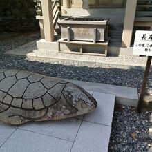 一画に面白いものを発見。浦島太郎伝説と書かれた由緒板の先には亀の石像が…。見た感じ、亀の形に似た自然の石を利用して作られたものでどことなくユーモラス。この亀に乗ると長生きできるようです。もちろん乗っときました。