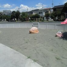 亀の形の遊具がある、浦島太郎伝説を持つ地域の公園