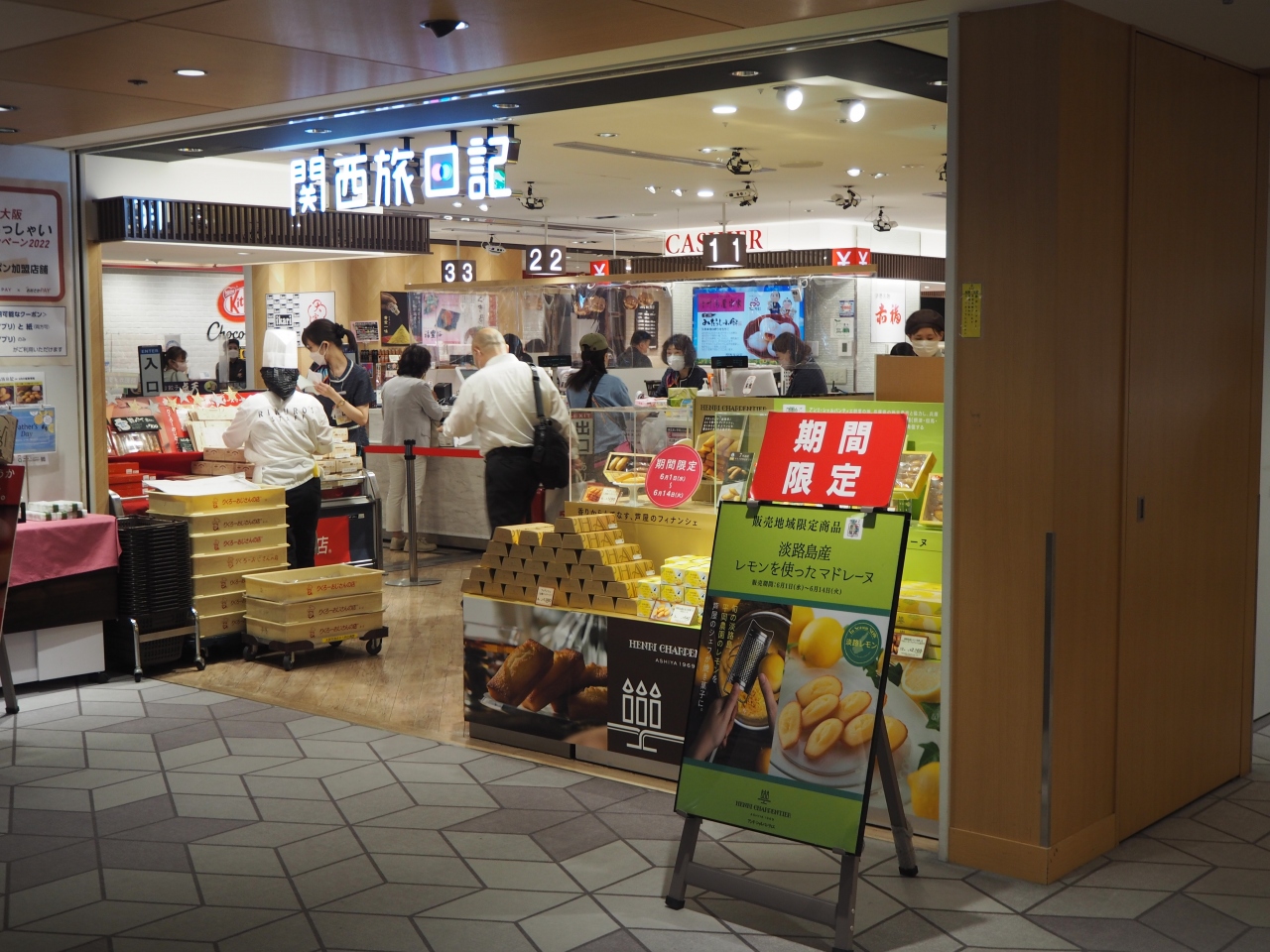 大阪国際空港のターミナルビルの2階の中央部の改札口を出た場所に関西旅日記はあります。大阪や関西の有名な菓子や食品やお酒類などが販売されています。観光地の銘菓などもあるので、買い忘れた際や追加で買いやすいです。品ぞろえが豊富なので、こちらに立ち寄るとお土産にいいものが見つかりやすいです。