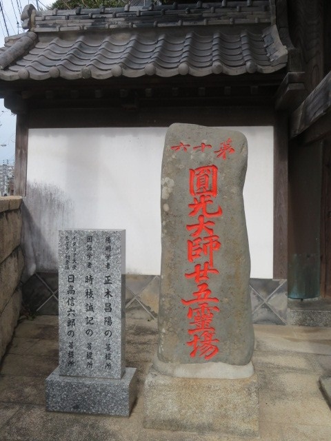 山門の前の石碑に赤字で「圓光大師十五霊場」と書かれていました。赤字というのは珍しくインパクトがありました。あと、横の石碑に三人ほどの菩提所であることが書かれていて、これはお参りするのに分かりやすくてありがたいと思いました。境内は静かで落ち着く雰囲気でした。