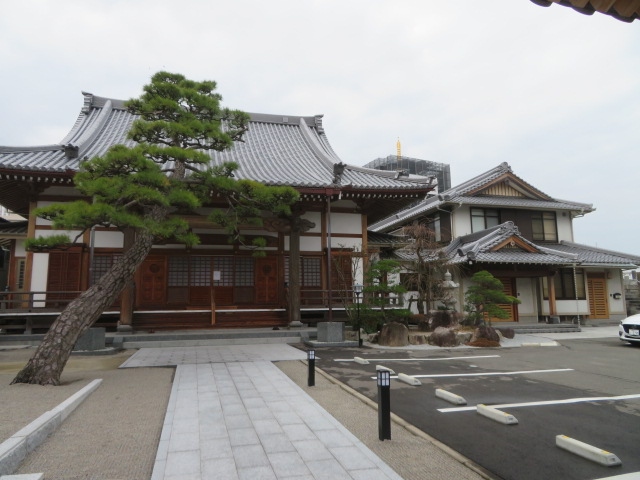 真宗大谷派のお寺で、正面の掲示板に、「同体大悲」の教えが書いてあるので、よく見るといいですよ。お寺自体は、山門も新しく、歴史は浅いようです。山門をくぐると、すぐに本堂があるのですが、本堂の前の斜めに生える松の木が素敵でしたね。