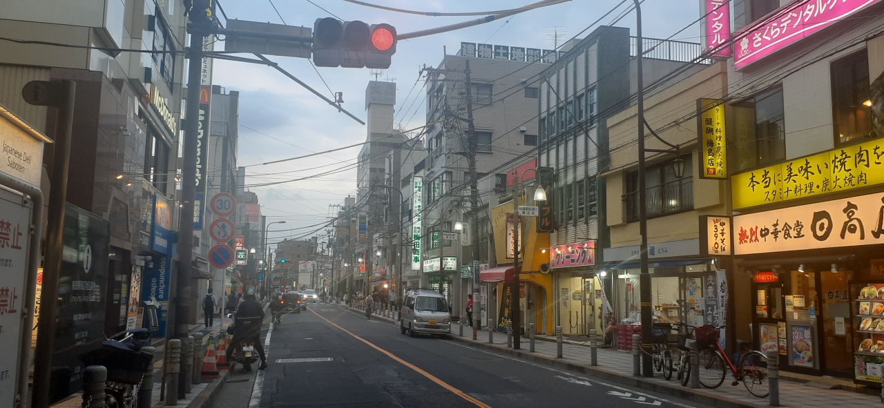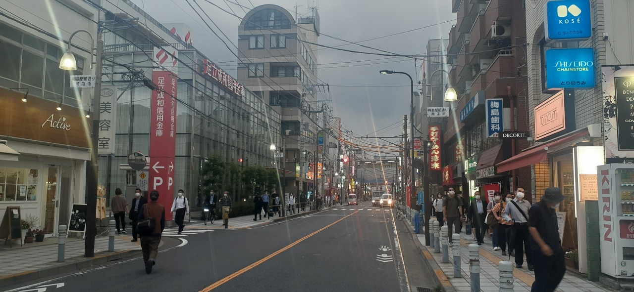 駅は道路と交差しており、道路の両側には多くのお店が並び活気がありました。