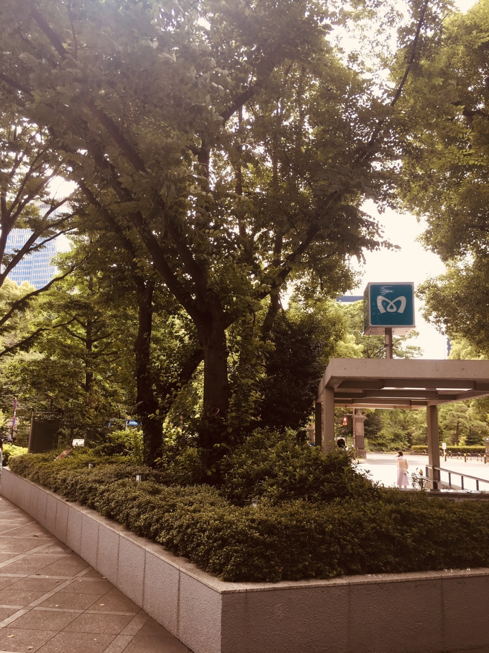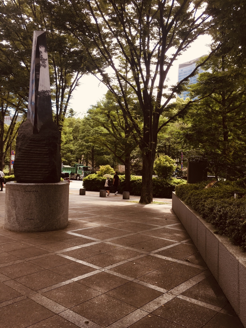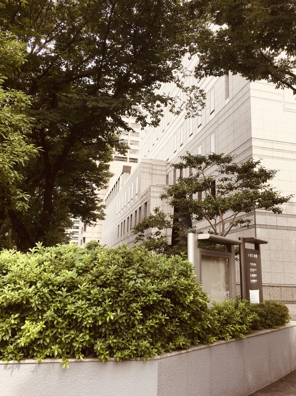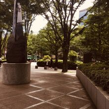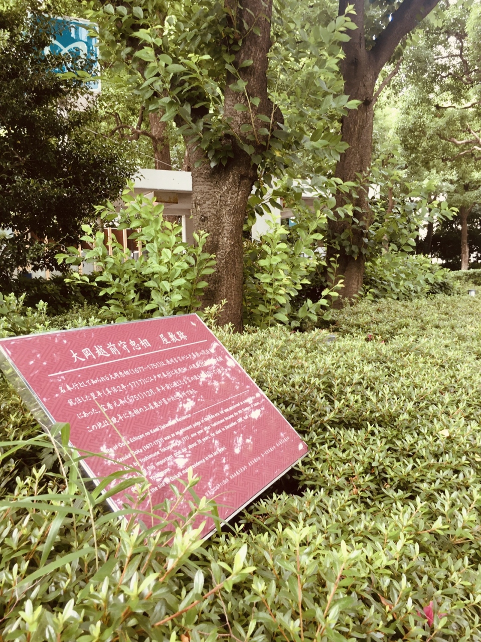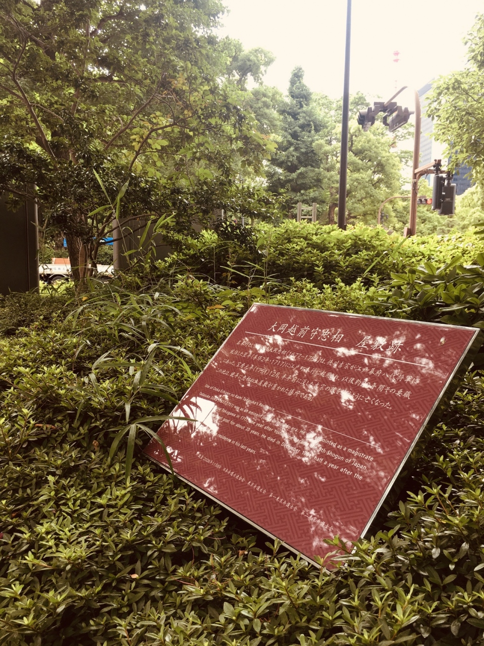 東京弁護士会館のビルの隣の通路沿いにあり、地下鉄霞ヶ関駅の地上出入口の横にあります。表から見ると整備された草があるので分かりにくいです。赤紫の説明板があるのみで、他は整備された草が生えているのみの場所でした。