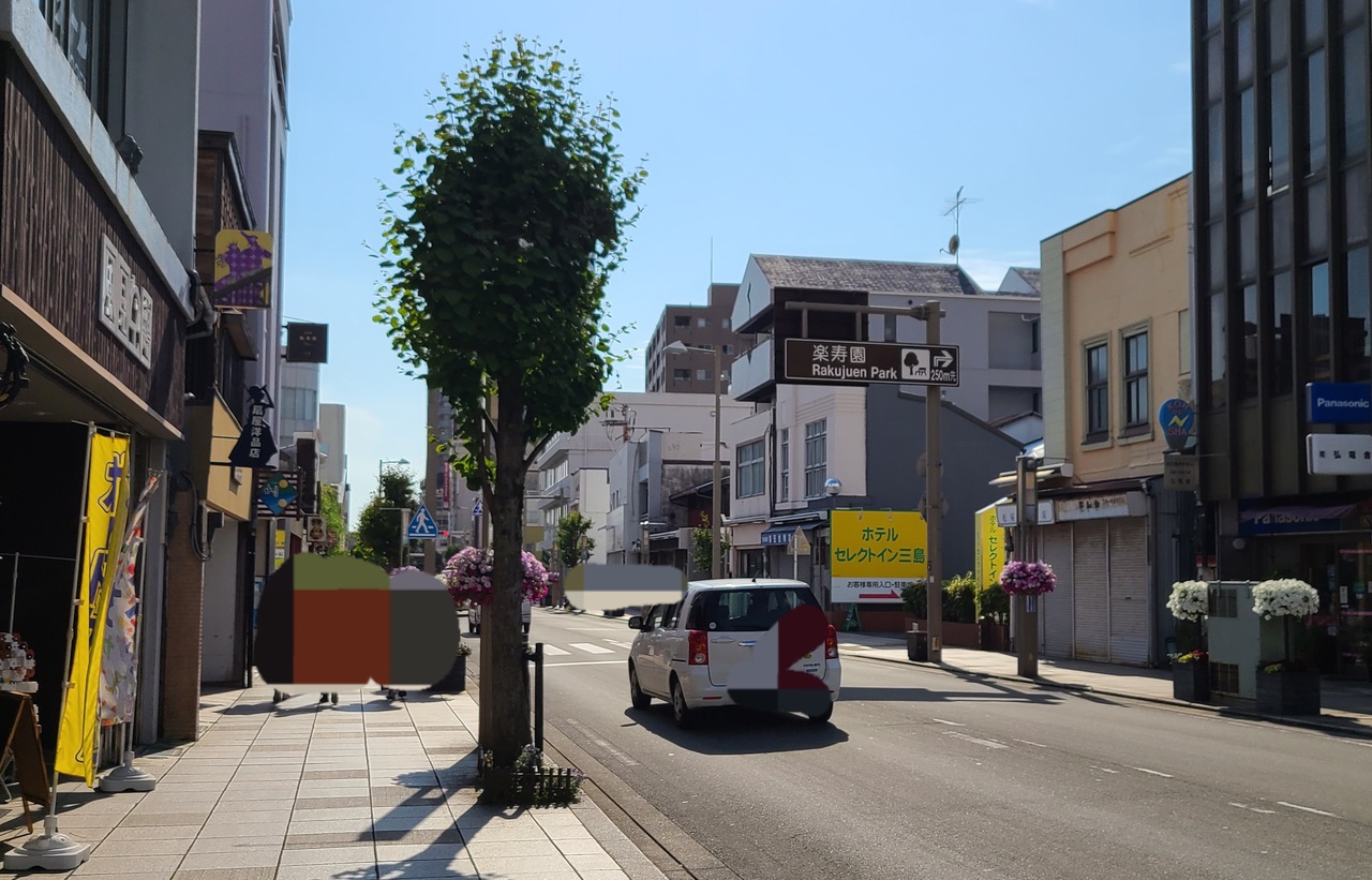 三島駅から12~13分くらい歩いた三島大社の鳥居の前の通りです。
