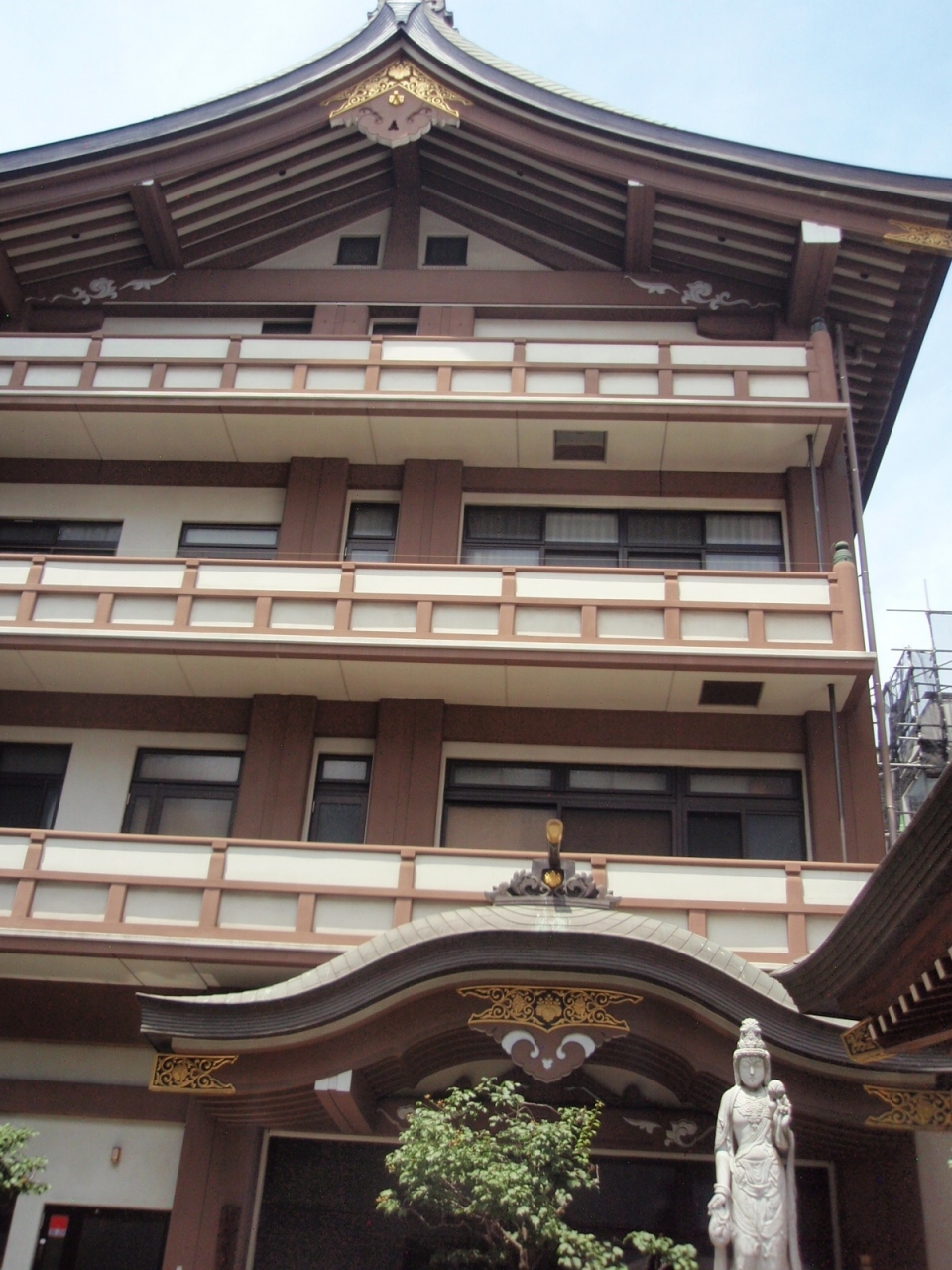 曹洞宗の一寺、創建は1594年、開基は直心軒祖道円成居士、開山は得州全可和尚、本尊は釈迦如来像です。山門を通ると、右手には薬師如来を安置する薬師堂、正面には四階建てビルの本堂があります。特に四階建ての本堂には驚きました。最近特に大都市部にある寺院の中には鉄筋コンクリート寺堂を多く見かけるようになりました。耐久・耐震の面でよいのかもしれませんが、京都の多くの寺を見た私には違和感を覚えます。西新宿にある寺のように周囲のビルにマッチさせて、全ての寺堂をモダンな建造物にした方が見栄えがします