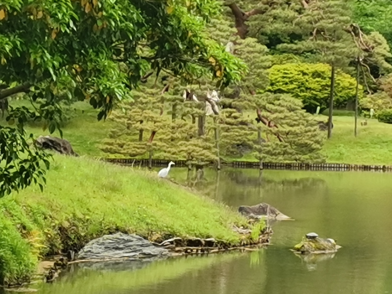 GWの最終日、久し振りに散策してきました。天気は花曇りでしたが、新緑がとてもきれいで癒やされました。ポーッと一羽いた鷺や芝生をちょこちょこ歩く小鳥などの鳥類が可愛くて、これまた癒やされました。桜や紅葉の時期はもちろん綺麗ですが、新緑の季節もおすすめです。