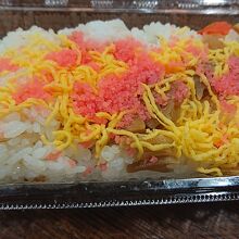 名鉄百貨店の地下に立地する、惣菜や弁当のお店です。6月中旬の平日の午後4時台に訪問しました。店頭は、お客さんで賑わっていました。購入した、「五目ちらし寿司」は、卵焼きと桜デンブで、色鮮やか。タケノコやレンコンも入っており、ヘルシーな感じでした。