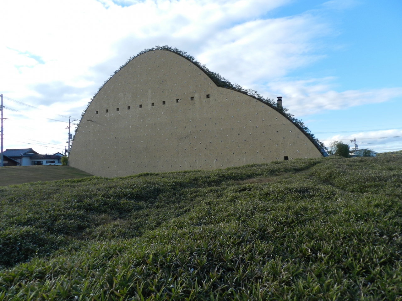 タイルの原料を掘り出す「粘土山」をモチーフにしているという不思議な外観に目を惹かれます。