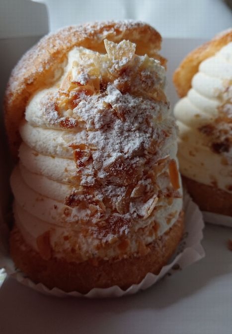 宇都宮市の郊外にある洋菓子店です。こちらのビッグシューを頂きました。クリームの量が半端なく、この高さなのでちょっと硬めのクリームで甘さは控えめでした。クリームの下にはほんの少しのフルーツとカスタードクリームがありましたが、クリームはちょっと飽きてしまい一度には食べきれなかったです。