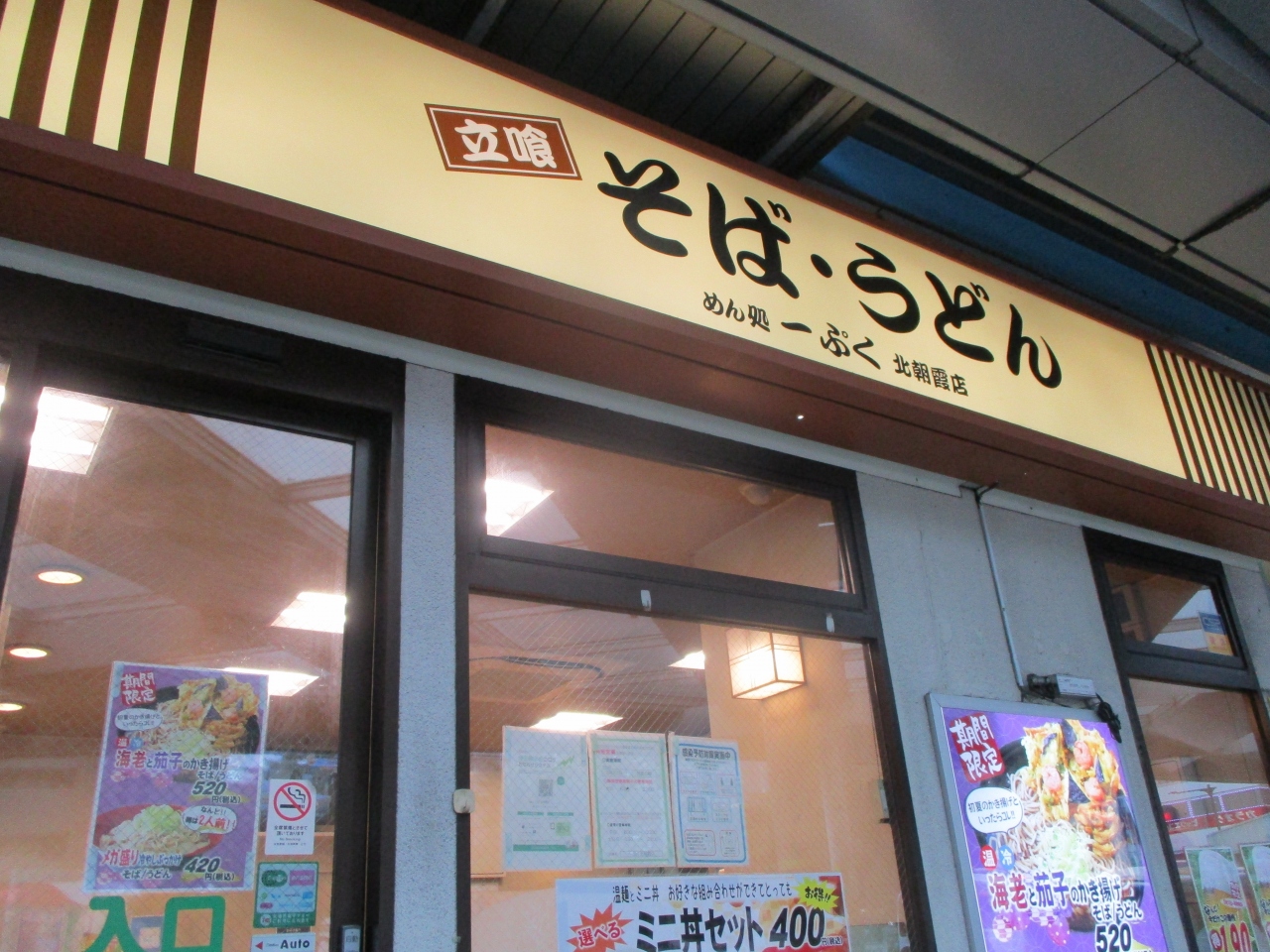 いわゆる駅そばで、和光市に用事ができて、JR武蔵野線北朝霞駅から東武東上線に乗り換える際に、見つけました。お腹が空いて時間がない時大助かりです。外の券売機で食券を買って中に入ります。早朝から夜遅くまで開いています。