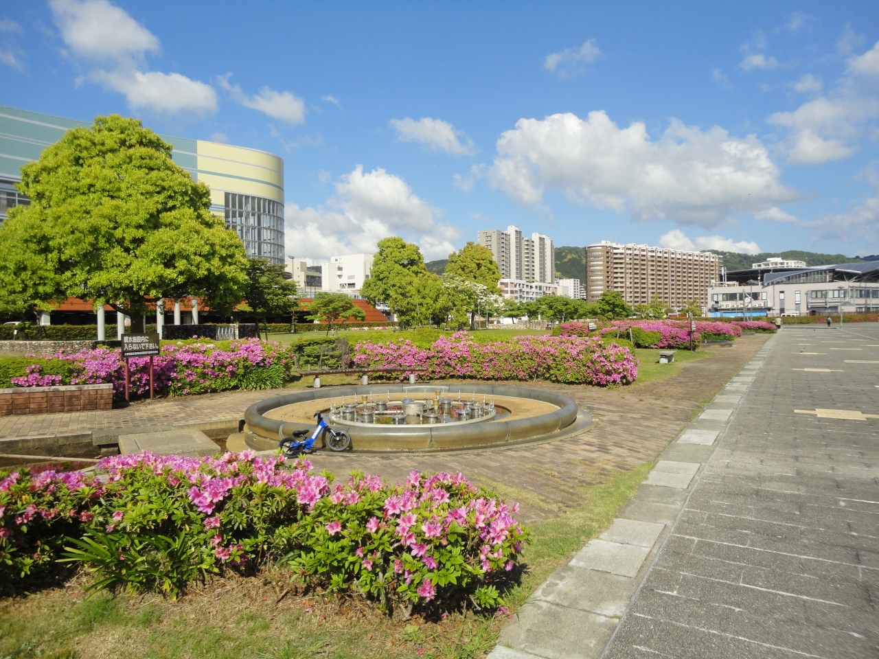 とっても大きな琵琶湖ですが、湖畔は公園として整備されているエリアが多くて、早朝の散歩がとても楽しかったです。滋賀県立芸術劇場びわ湖ホールから、びわ湖大津プリンスホテルまでの車道はまっすぐ一直線、その道路の北側に湖畔の散策路が設けられていて、お散歩が楽しめました。