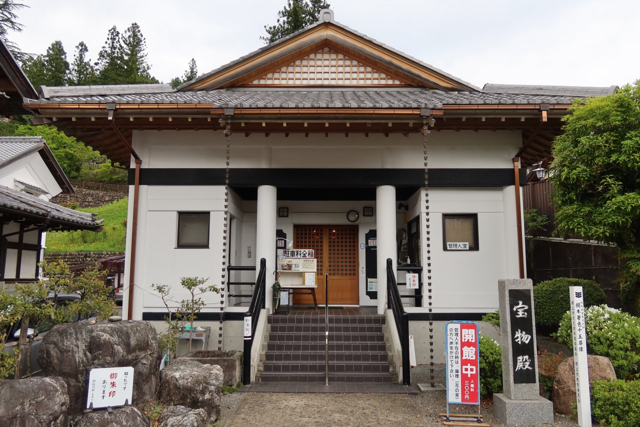 郡上八幡城の麓、城山公園の下側に安養寺があります。その宝物館が安養寺宝物殿です。安養寺の境内は駐車場に使われていますが、その入口、山側にあります。