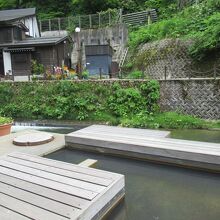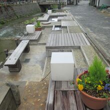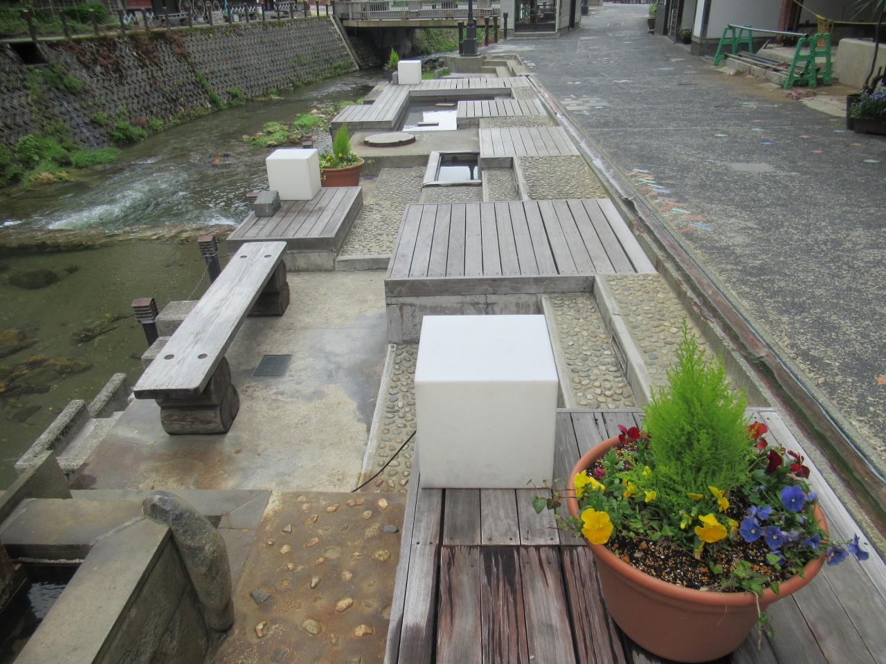 銀山川に架かる白銀橋近くに和楽足湯があります。川に面して木製のベンチや足湯に浸かる板の間などがあり、観光に疲れた身体を癒してくれます。入った時は熱かったですが、しばらくすると馴染んできて気持ちよかったです。和楽足湯向かいの野川とうふやで生揚げと豆腐テンを買って、足湯に浸かりながら食べました。白銀橋そばのアイラスゲーナでおすすめのすいかジュースを買って、飲みながら浸かるのも気持ちいいと思います。