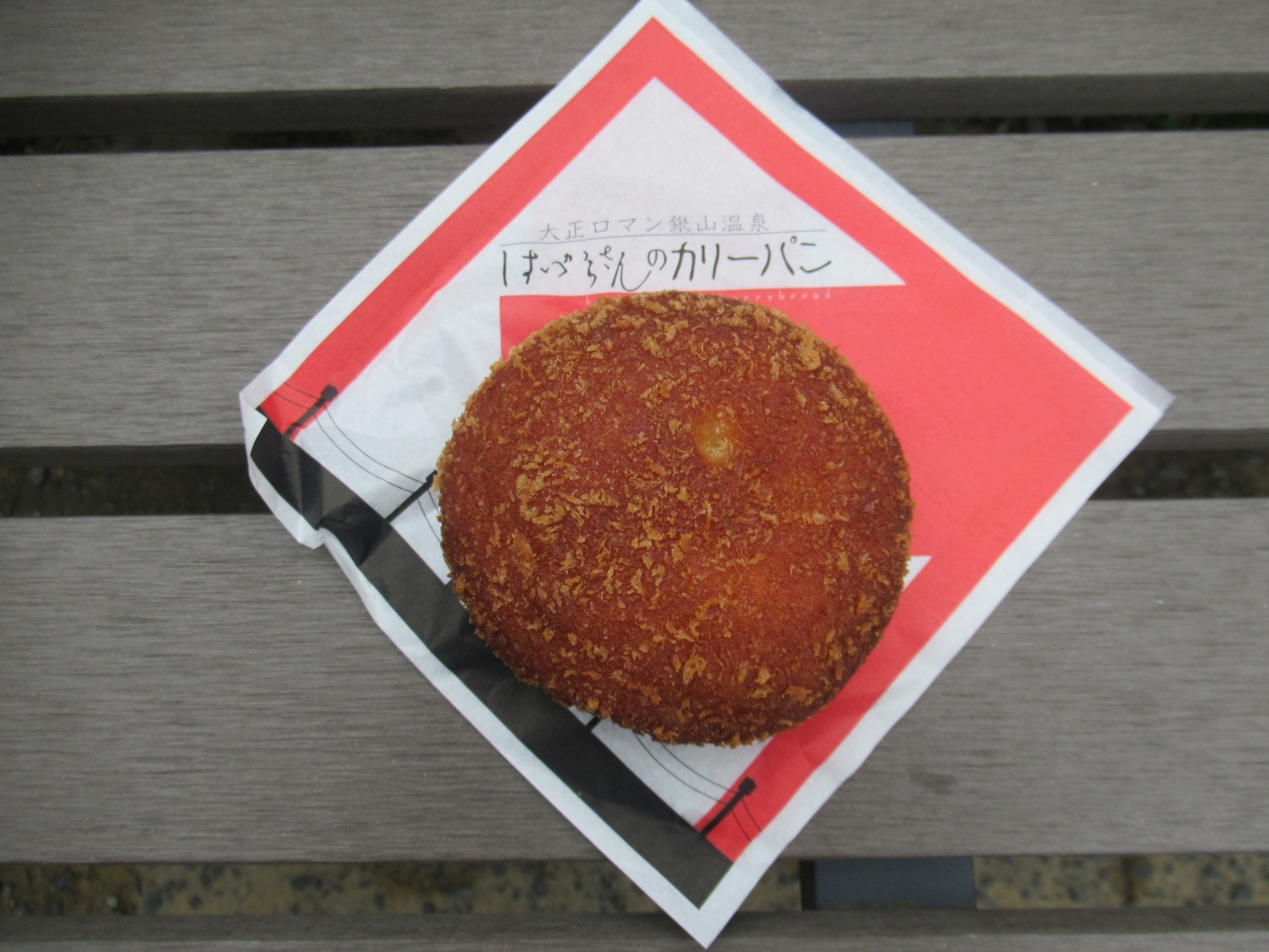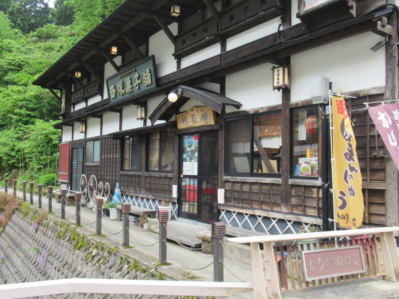 白銀橋のたもとにあります。土産物が揃っていて、久持良餅や揚げ饅頭が名物です。銀山温泉街に以前出店していたはいからさん通りのカレーパンをここで買うことができます。銀山温泉に昼過ぎに着き、カレーパンを買って白銀橋のベンチで食べました。スパイシーで美味しかったです。翌日帰りに再び寄り、久持良餅の黒糖とくぢら餅の大福を買いました。粒あんの入ったねっとりしたくぢら餅はかなり甘かったです。