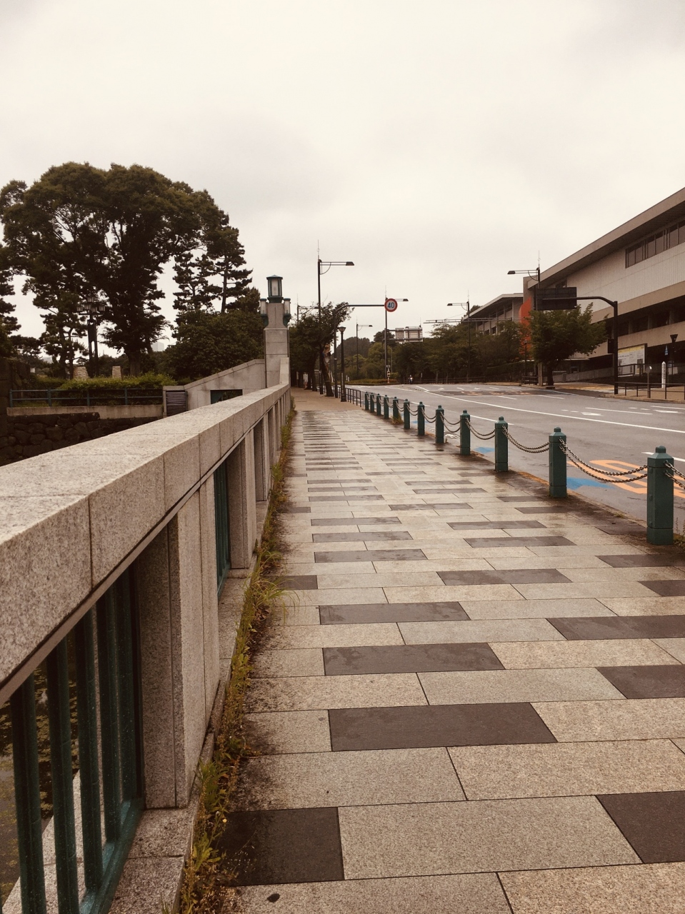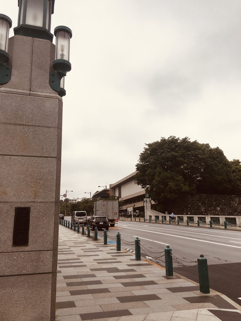 竹で編んだ橋が最初に架かっていたのでこの名称です。現在は紀伊国坂に繋がっている道路で、自動車の流れもスムーズでした。歩道沿いには、ランプがあり坂道となっています。車道と歩道の間はいくつか杭があって鎖で結ばれています。