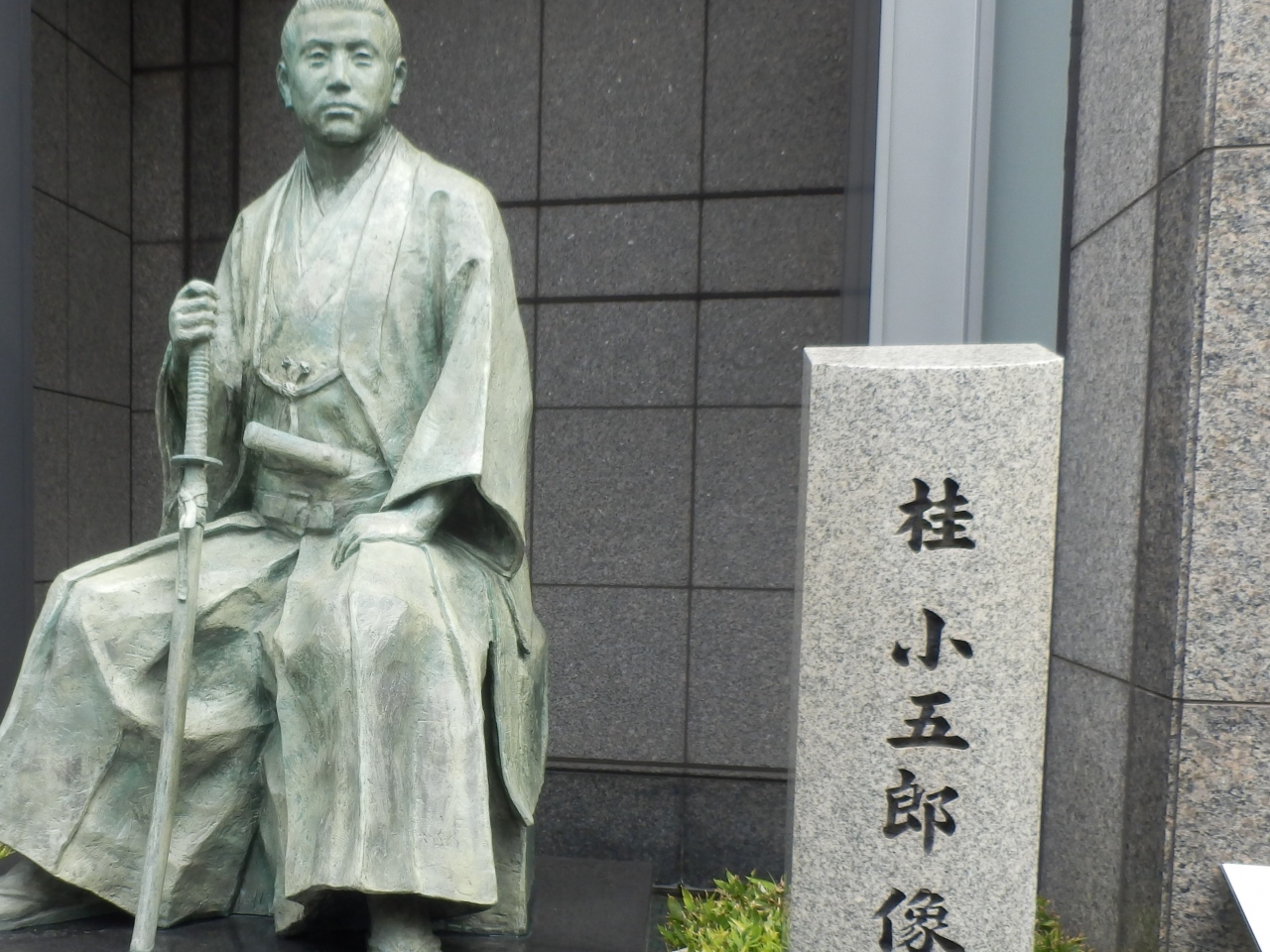 元長州藩邸跡の京都ホテルオークラ西北角に桂小五郎像がある、長州藩を代表して薩長同盟を結び以降日本の近代化の礎を築いたとされている桂小五郎の像が藩邸跡に造られ椅子に座ってのんびりとした姿をしているが当時の緊迫だった京都周辺はの様子は見る影もない小五郎今日の姿はどの程度予見していたのだろうか