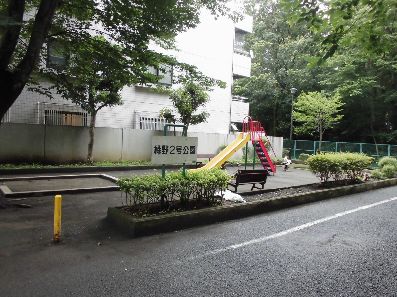大和市にある子供用の公園です。細長いのが特徴で、あるのは滑り台と砂場だけ。なぜこの公園がここのスポットに登録されているのか…。そう思うくらいの小さい公園です。でも大和市は公園が多いので子供には暮らしやすい一面はあると思います。