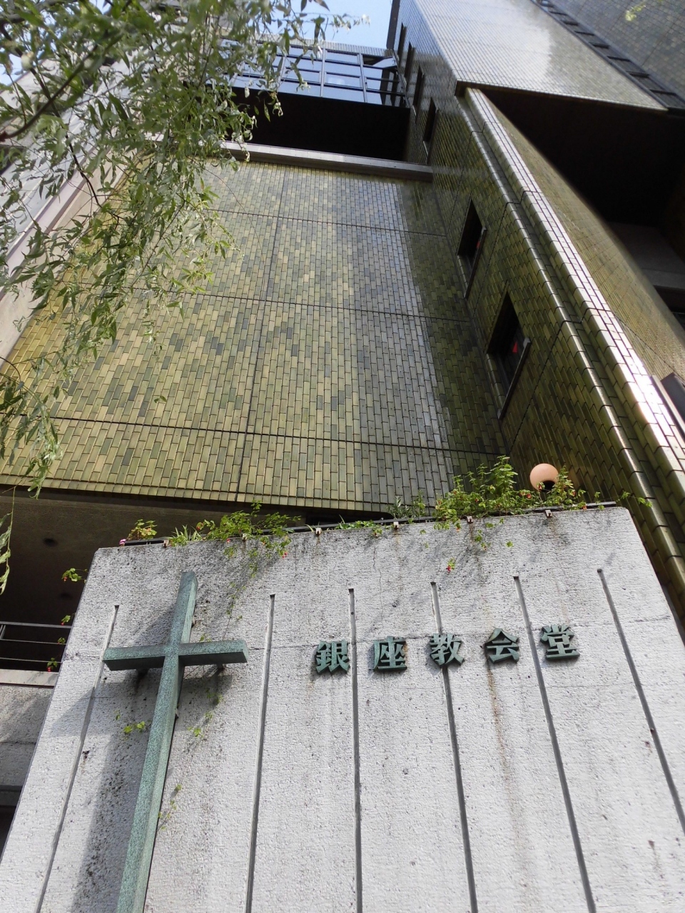 有楽町駅から銀座4丁目方面に向かって散策していた時に、協会があるのに気が付きました。一見、高いビルだったのですが、建物の外壁に十字架が飾られていたので、キリスト教の教会だとわかりました。とてもデザイン性にすぐれた銀座らしいオシャレな教会だと思いました。
