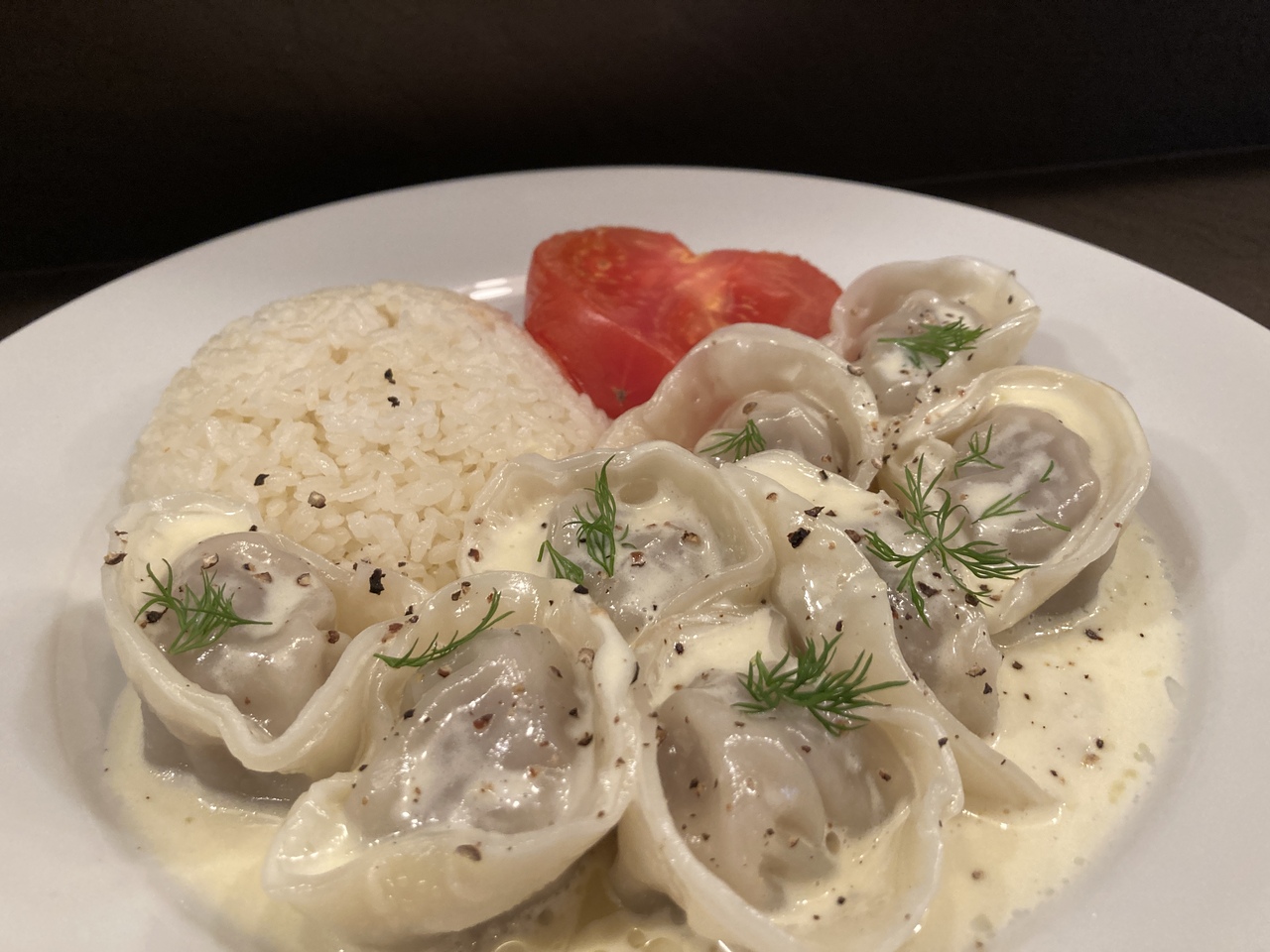 かけられたクリームソースとも良く調和していて、頬を膨らませながらモゴモゴとペリメニを味わうのは実に楽しい。
