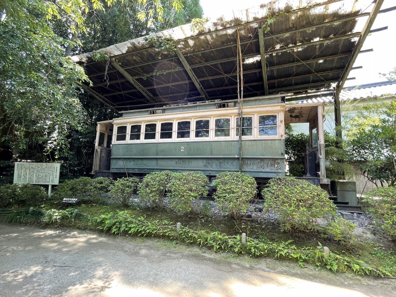 平安神宮の神苑へ入るとすぐにある南神苑に、日本最古の電車「チンチン電車」が展示されています。1895年に京都電気鉄道として運行し始めた当初からのものだそうです。神苑内に置かれるようになった経緯があるようですが、庭園の雰囲気にもそぐわず違和感を感じました。