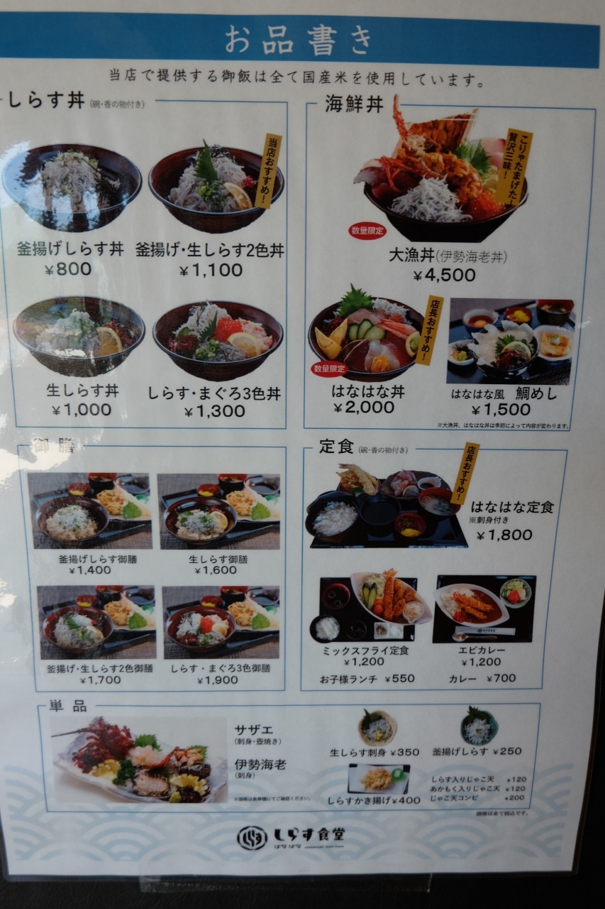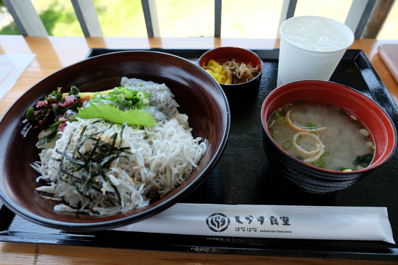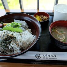おしゃれな施設でシラス丼などを食べる