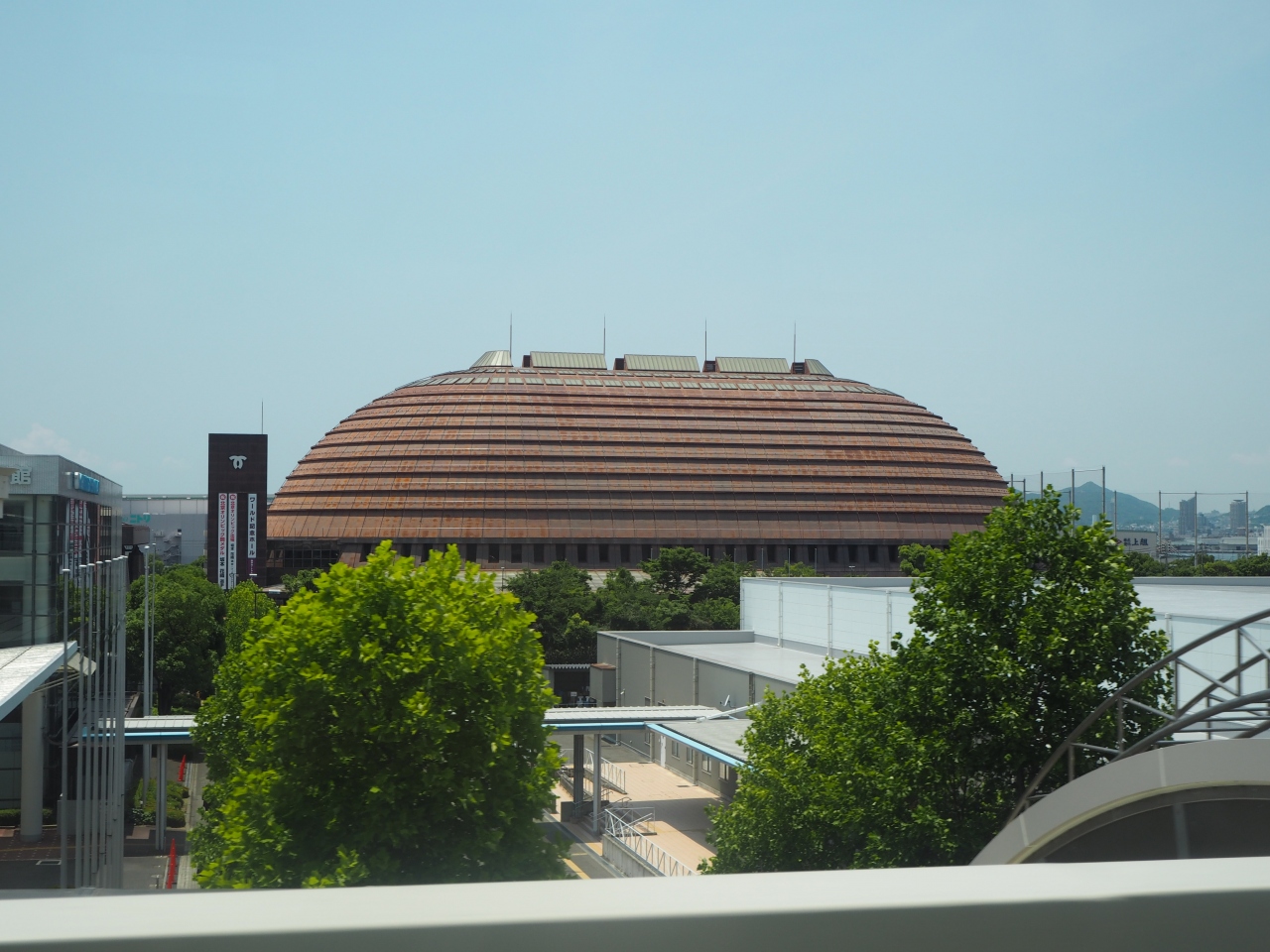 ポートアイランドホールはポートアイランドのなかほどの神戸空港から三宮へと向かうときは市民広場駅からすぐの左側に見えます。ホールは深皿をフタした感じの大きなホールです。収容人数からすると行きまだしも、帰りは輸送機関のポートライナーは大混雑しそうです。