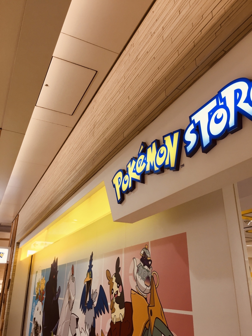 店内黄色一色に見える店内で、出入口付近に縫いぐるみが多く置いてあり、よくみると店内左右は黄色ではなく、様々な色合いの縫いぐるみが置いてありました。子どもばかりと思ったら、大人の客しかいなかったです。店外の壁にはキャラクターの絵がありました。