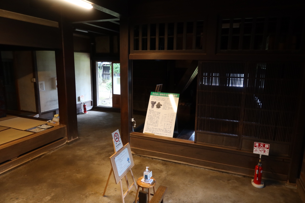 絹街道沿いに建てられた旧中村家住宅は道に面して長屋門、その奥に2階建ての疑似洋風建築の住宅があります。幕末期に建てれた住宅に1階は和風、2階は外壁が海鼠壁で窓は洋風おと面白い造りをしています。中も1階は見学できるようになっていましたが、間取りは重和風でした。無料で見学できるので、アクセスは悪いですが、建築好きには一見の価値ありです。