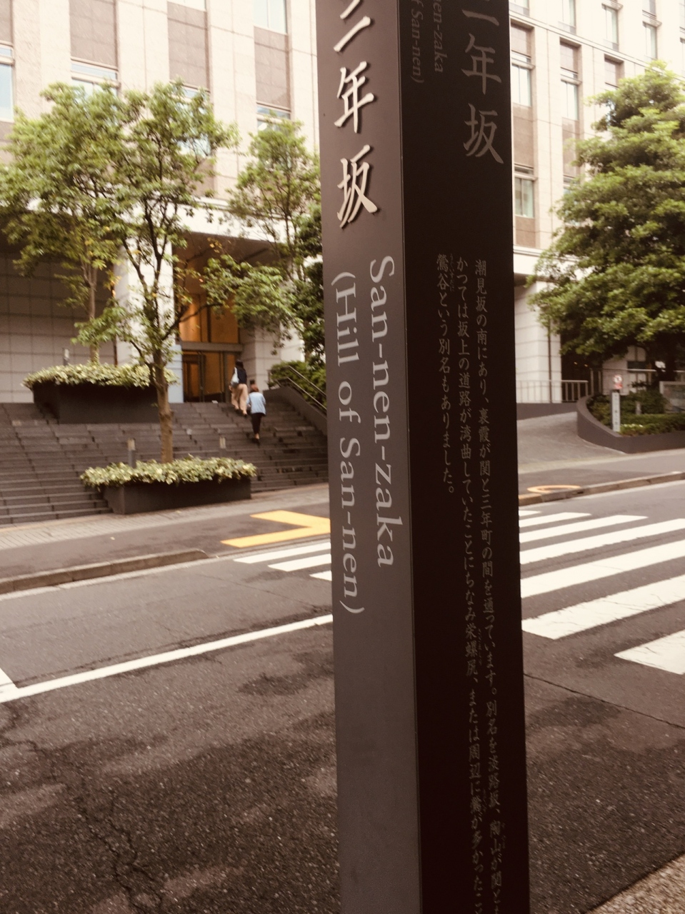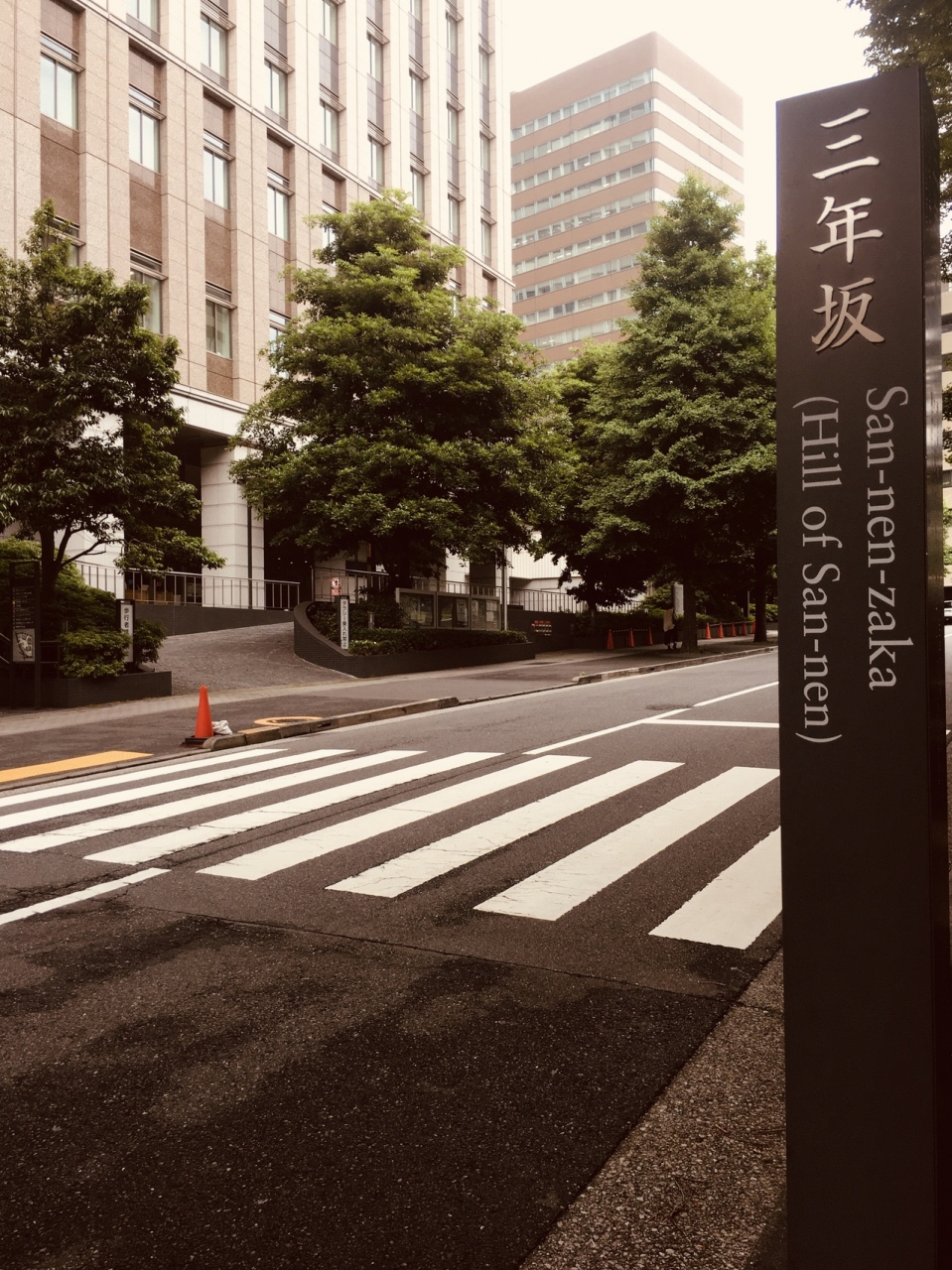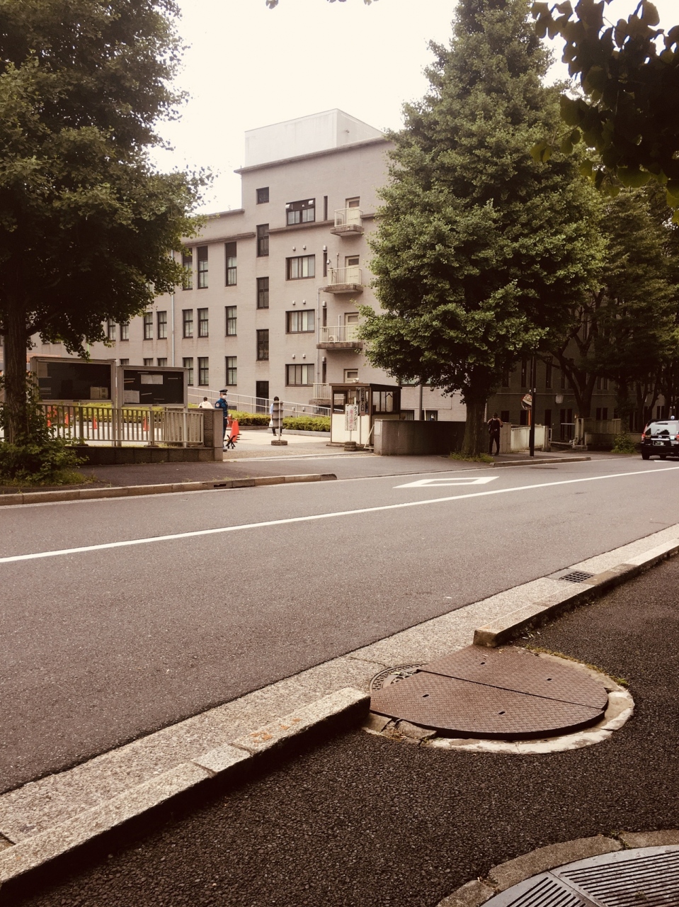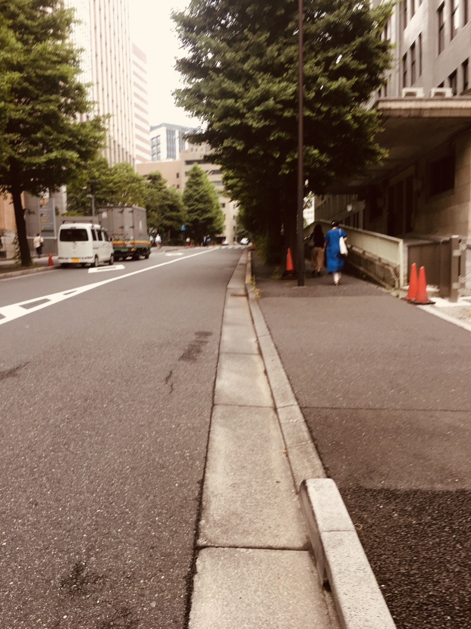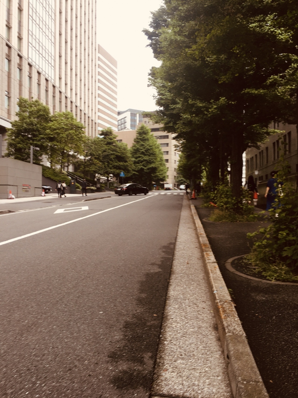 坂道沿いには、財務省、会計検査院等があるのでビルの前には警備員が常駐していました。交通量が少なめの片側一車線の車道の左右の歩道との間は間隔を空けて木が立っていました。傾斜はそれほどでもなく、自転車でも降りなくて上がれそうでした。