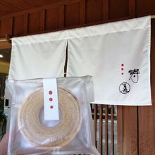 三寿園の定番商品と言えば、店名の“三”をイメージした150年の歴史を持つ「みたらしだんご」もその1つだと思います。5本入りパックで400円ですが“バラ”でも1本100円で買えます。食後でだんごもちょっと重たかったので、もう1つの定番商品である「バウムクーヘン 小丸」を購入。個包装になっており1個税込200円。