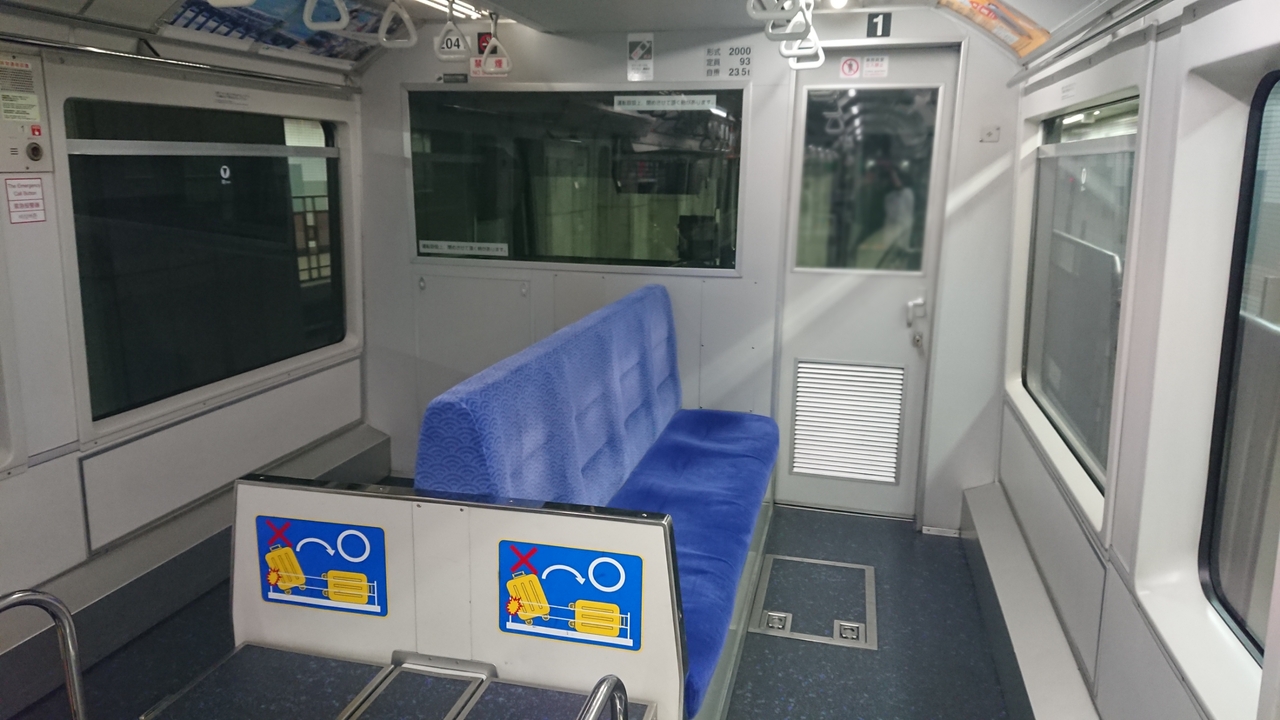 以前乗った際は展望席があったような気がしましたが、編成の先頭部は横向きの座席でした。