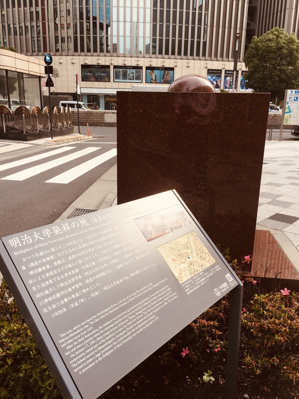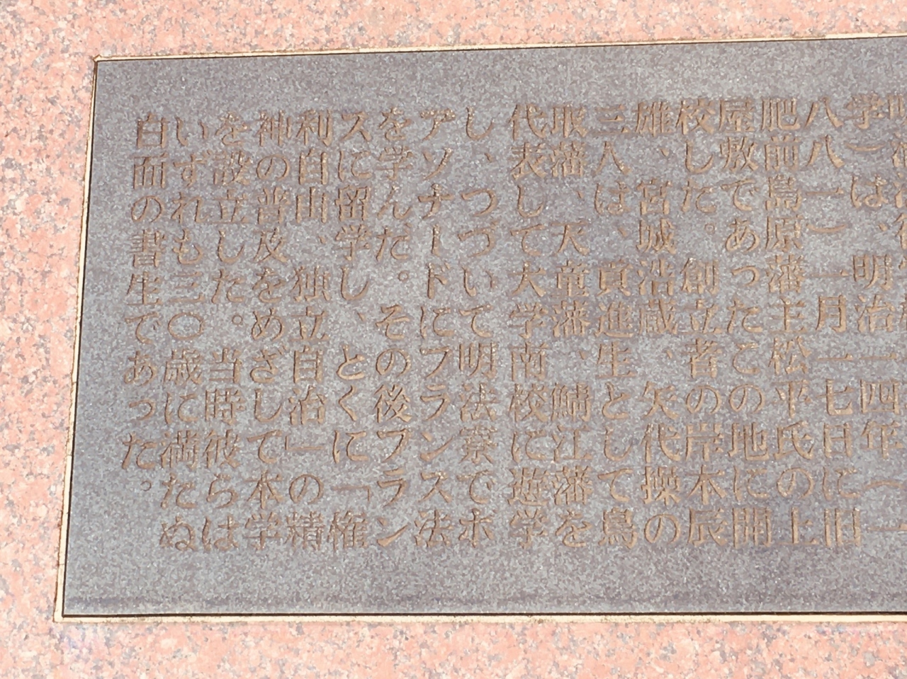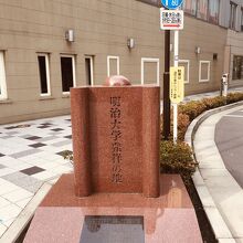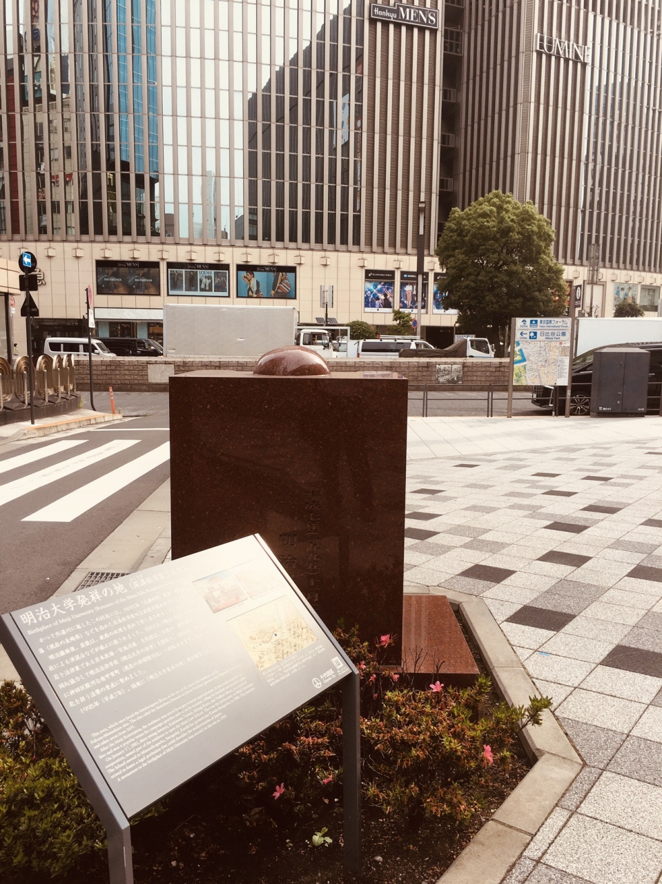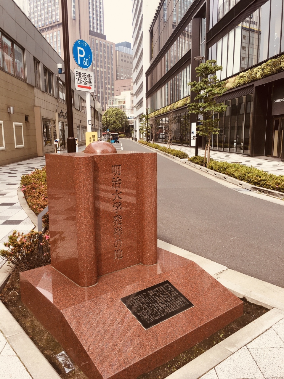 銀座の中心部付近の裏道に繋がる場所にありました。茶系の新しい綺麗な石碑でした、石碑が出来てから数年ぐらいには感じました。1800年台後半に開校し、現在は跡形もありませんでした。花壇のような場所にありました。