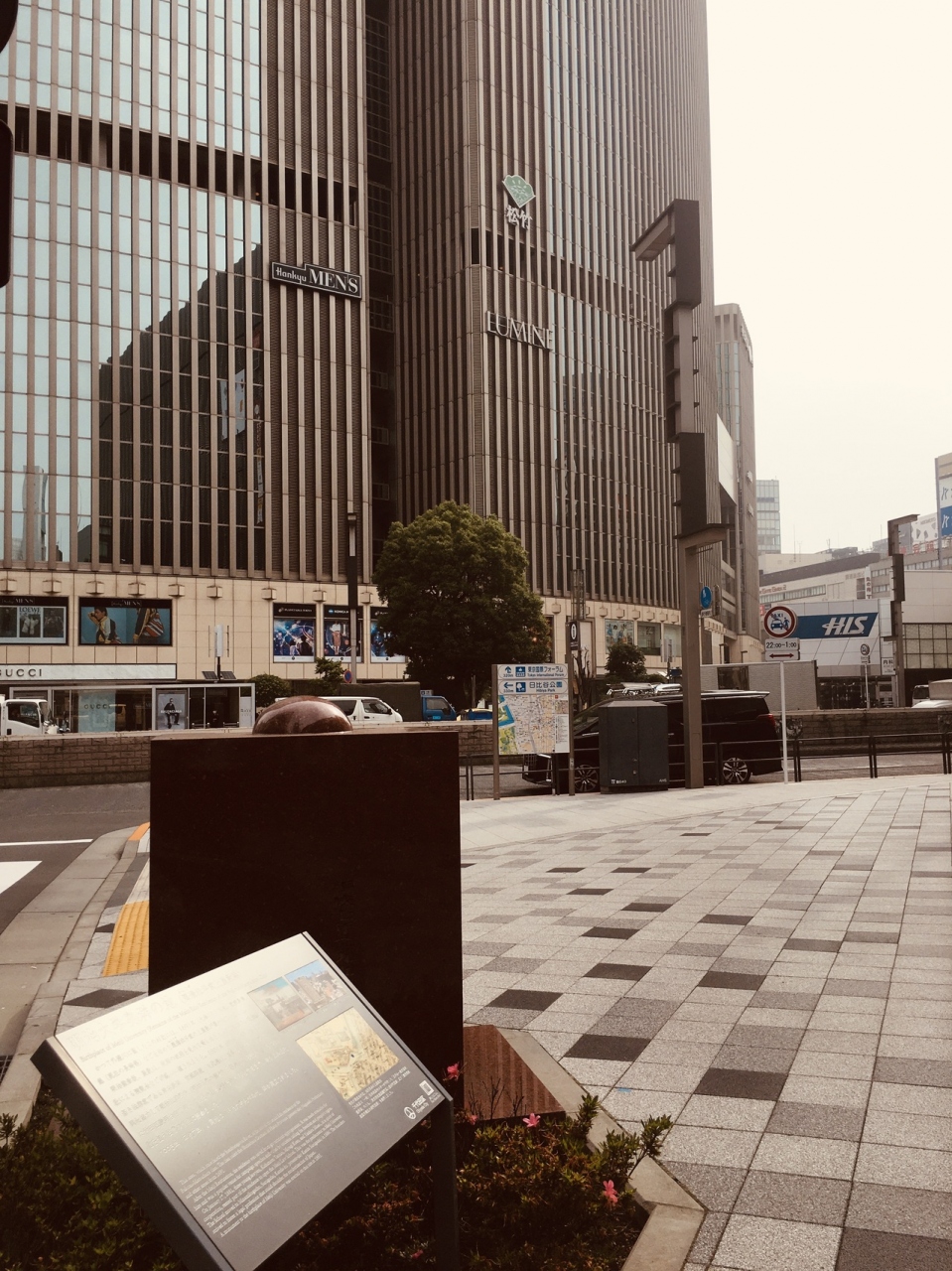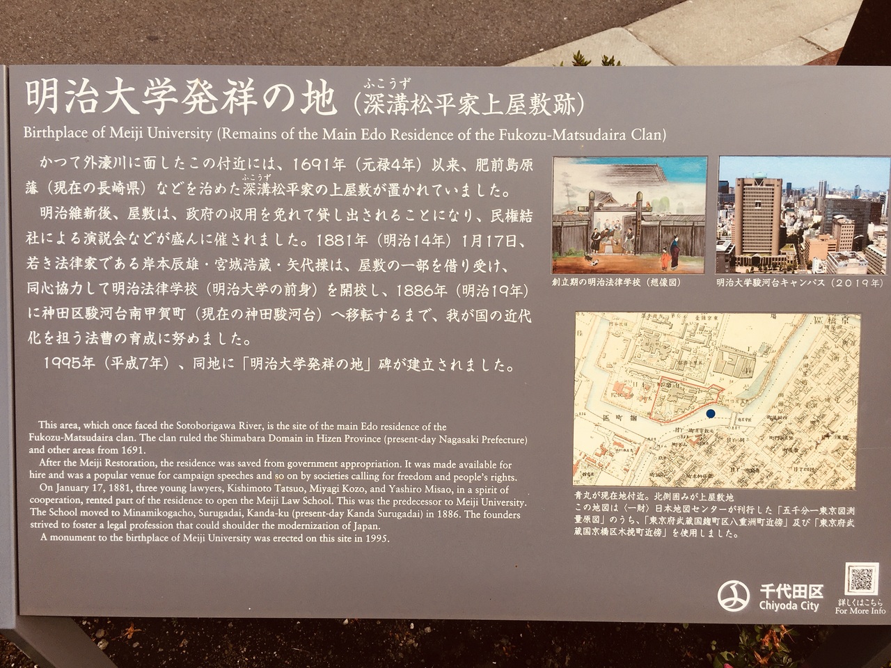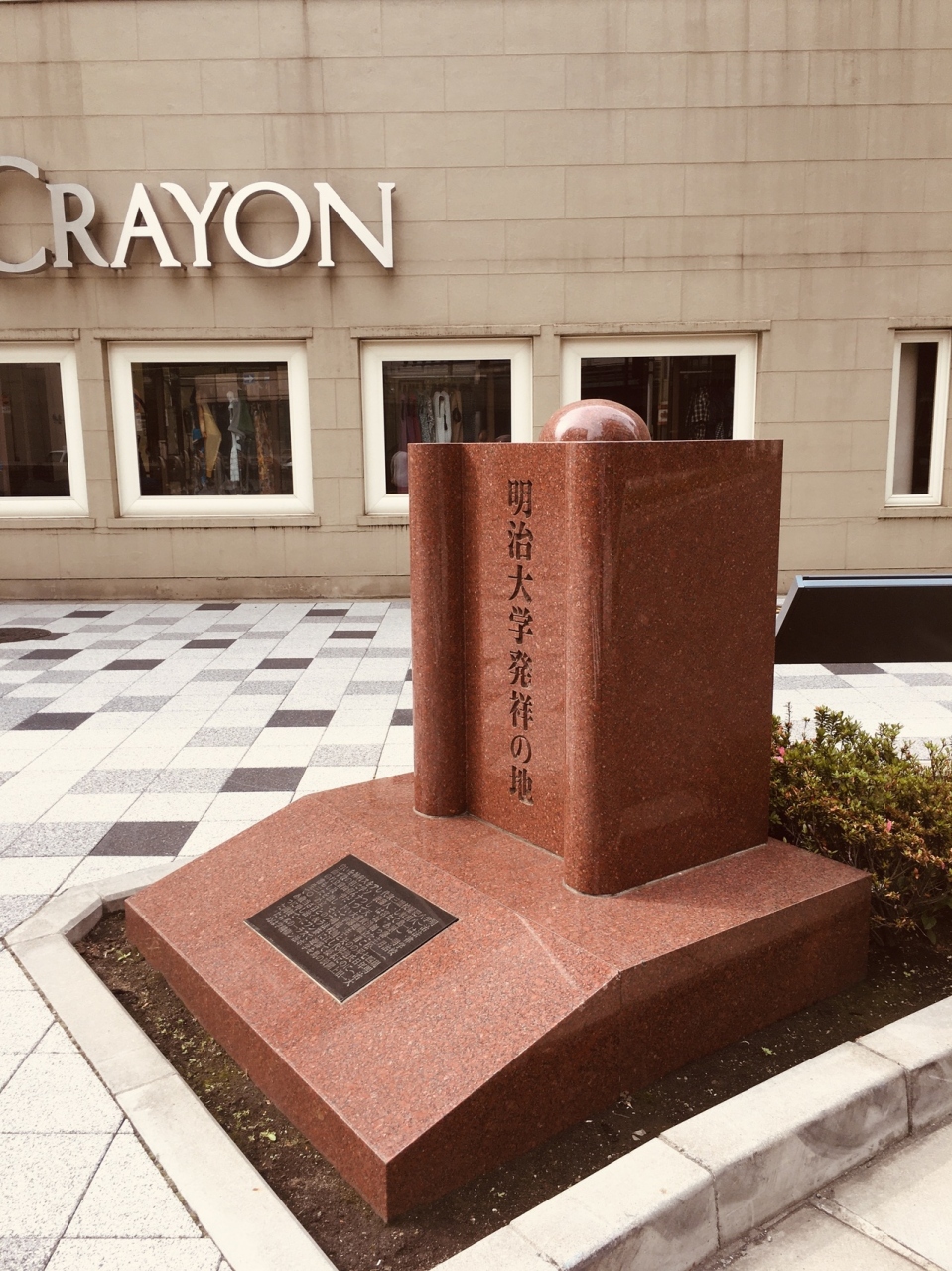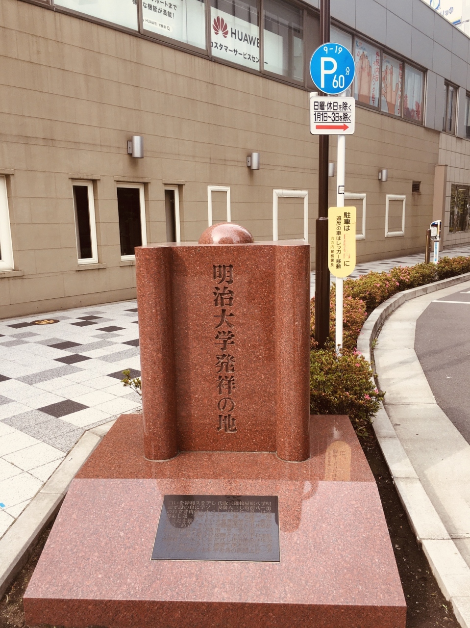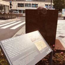 銀座の中心部付近の裏道に繋がる場所にありました。茶系の新しい綺麗な石碑でした、石碑が出来てから数年ぐらいには感じました。1800年台後半に開校し、現在は跡形もありませんでした。花壇のような場所にありました。
