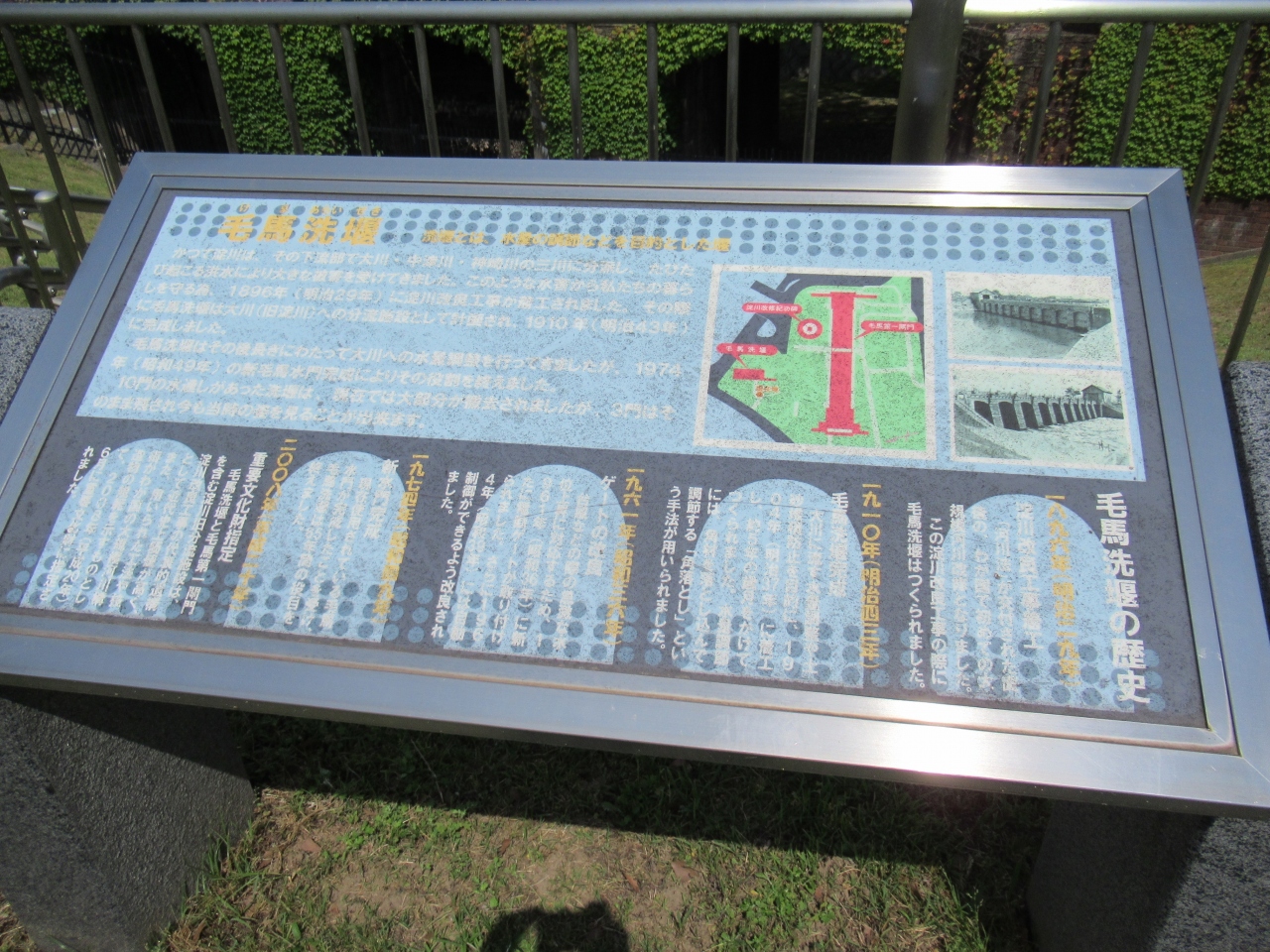 毛馬地区ではこれより下流に新淀川を開削、流水を直接大阪湾に流し、分岐点には第一閘門と洗堰を設置しました。