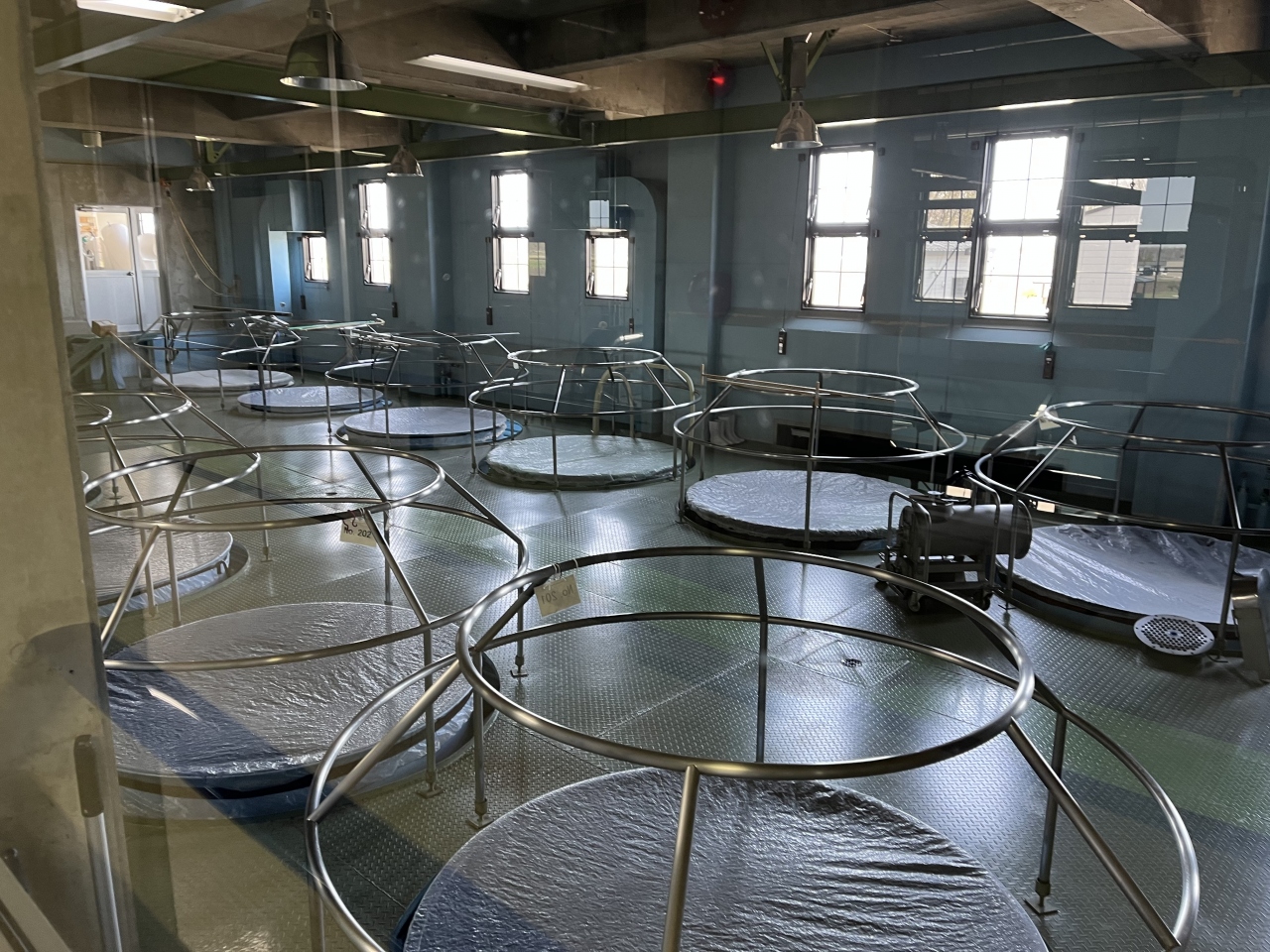 この時は工場は稼働しておらず、場内の見学ができたほか、映像での製造工程の案内がありました。所要時間は10分ほどでした。焼酎の製造時期である9月~11月には、実際の醸造作業を見ることができるそうです。