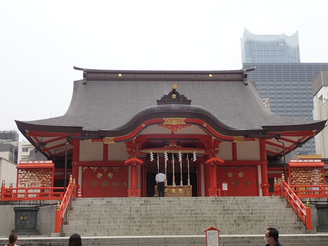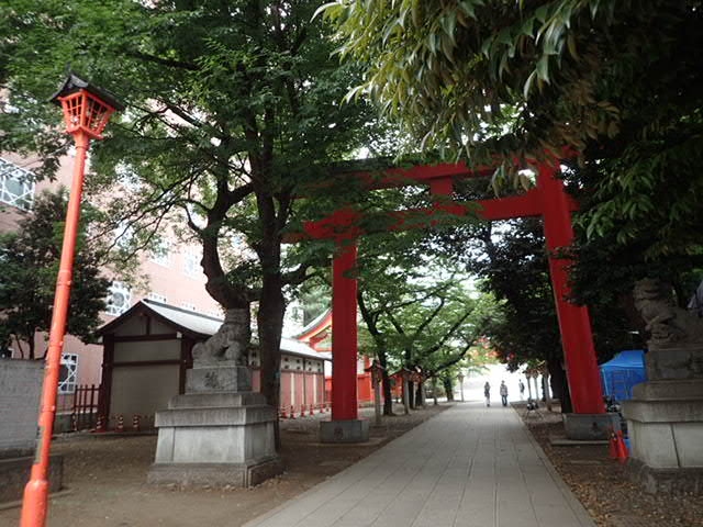 JRの新宿駅からは少し離れています。徳川家康が江戸に移るより前から新宿の総鎮守として重要な位置を占めていたそうです。新宿にありながら、緑の多い境内は静かです。社殿は朱色が鮮やかだったので、定期的に塗り替えられているのかもしれません。