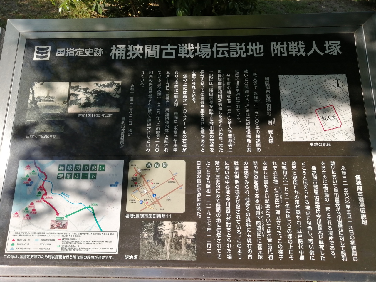 桶狭間の戦いの戦死者約2500人を供養した塚です。場所は丘を登った住宅街の中。はっきり言って地味な場所ですが桶狭間古戦場とともに、国の史跡として指定されています。450年以上経った現在でも曹源寺の住職が供養を続けているそうです。