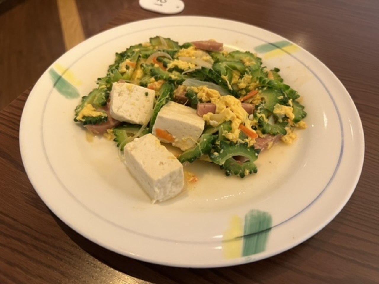 先ずは泡盛の古酒ミニボトルをロックで。海ぶどうにゴーヤチャンプル。酔いました。