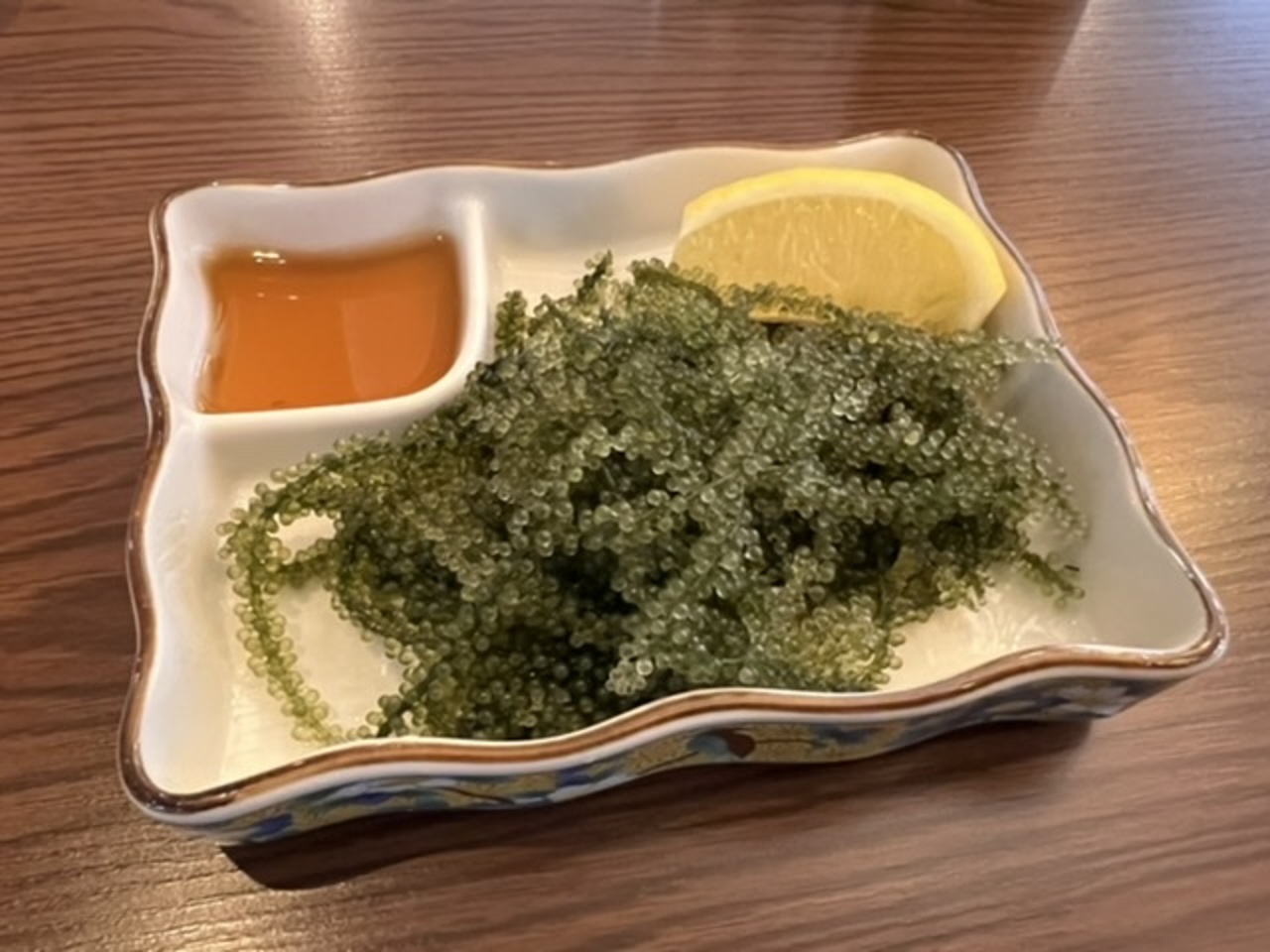 海ぶどうとゴーヤチャンプルを古酒ミニボトルで!