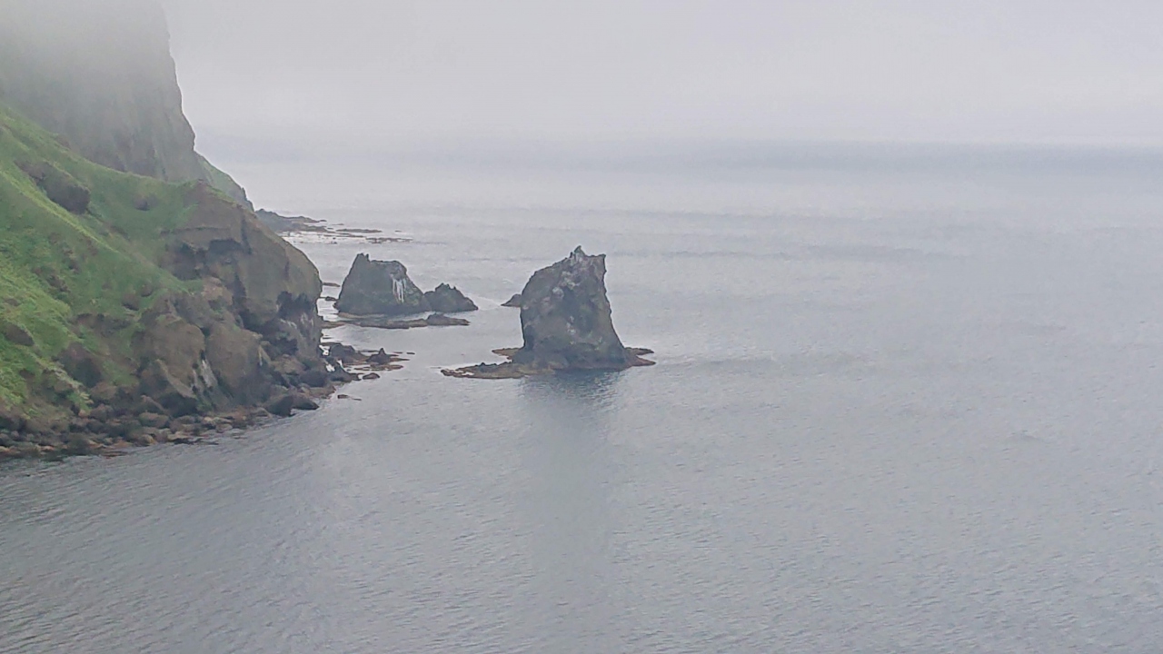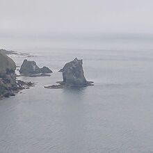 礼文島の3大奇岩(?)の一つ。岩を何かに見立てるのは多いが、そういうものは結構無理があるものが多い気がする。猫岩はそういったなかでは、かなり猫っぽい感じがする。桃台猫台からだと今一つだが、そこよりその少し手前の道からの方が猫らしさは感じられるので、猫感を感じるためには、そちらがお勧めかも。