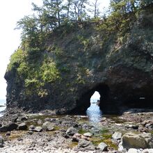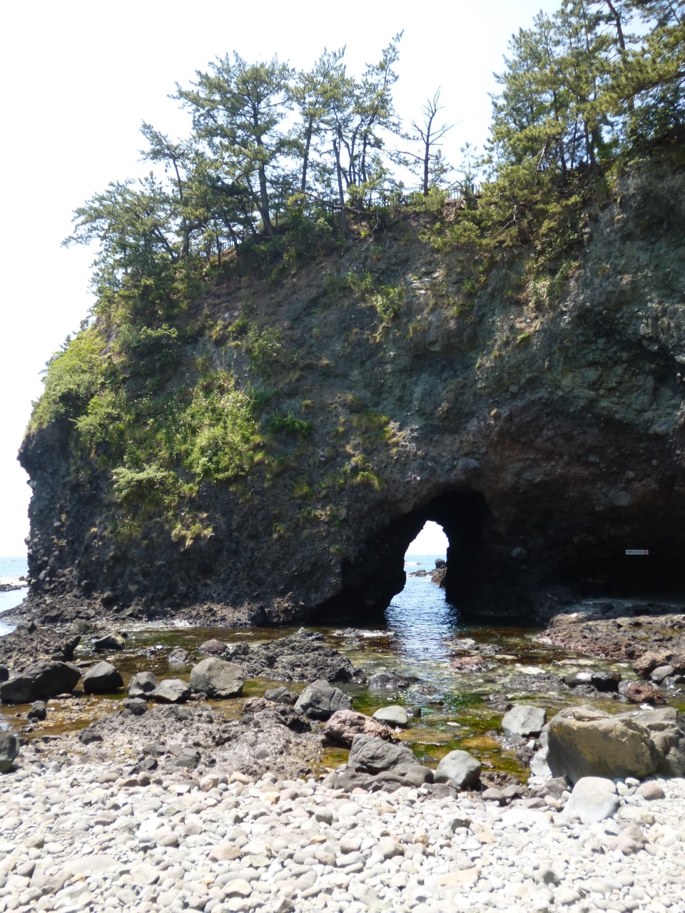 福浦港から関野鼻まで海岸線、奇岩の多い素晴らしい景色の眺められる能登金剛。能登金剛の中心的な観光スポットが、巌門のある地区です。駐車場、遊歩道も整備されていて、遊覧船もあります。駐車所から海岸線へ向かって下りていくと遊覧船の乗り場が。その手前、左手に下りていく階段があり、巌門の良く見える場所へ出ることができます。海に突き出た岩盤にぽっかりとあいた洞門は確かに門のようで、周囲の風景も素晴らしいです。