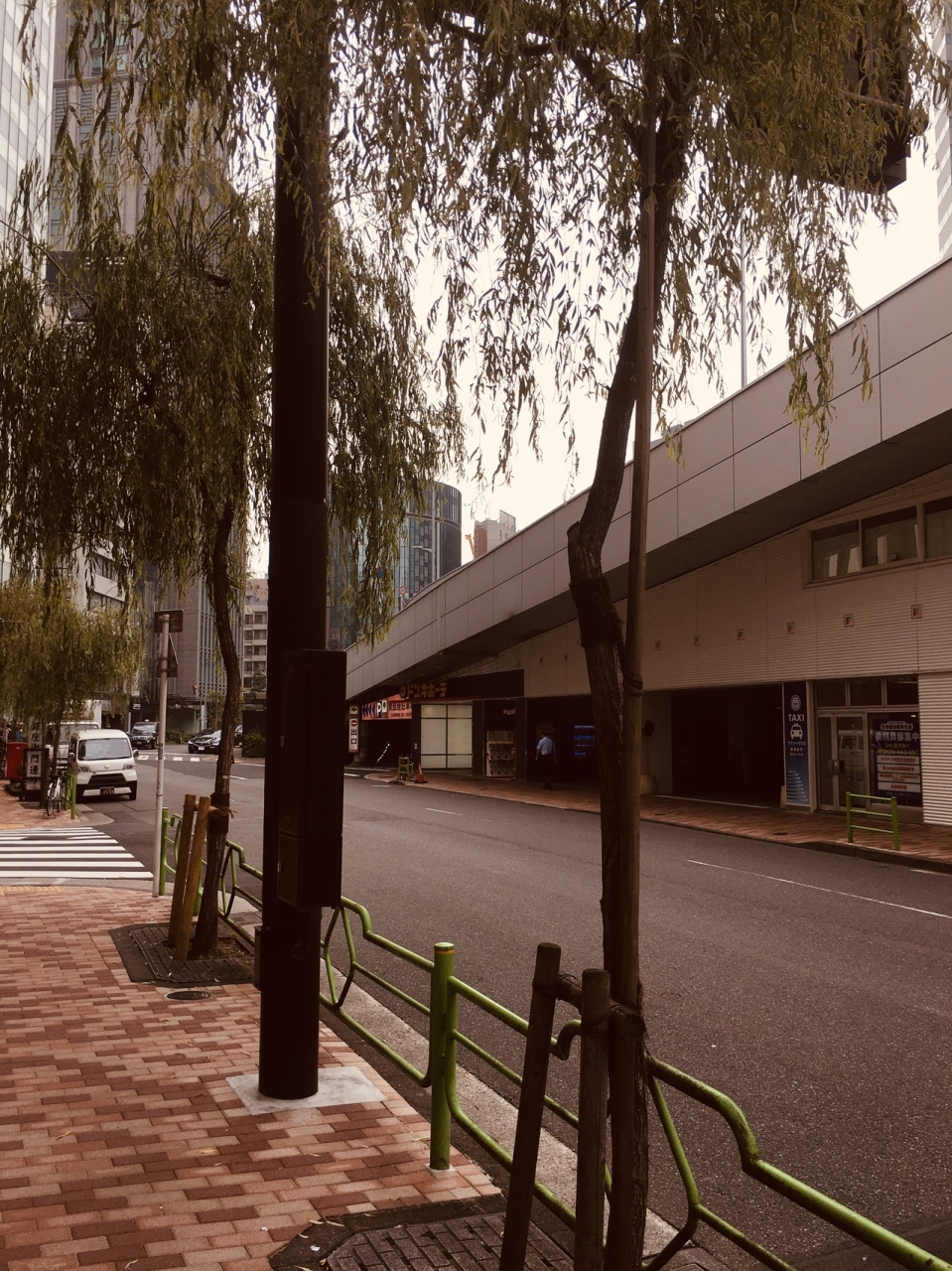 大通りから逸れた通りですが、通勤客が多い道でした。車の交通量は少なめで、車道と歩道の間には柳の木が間隔をを開けて立っていて、良い雰囲気でした。いくつも枝分かれした道があって、食べ物屋等少ない通りでした。