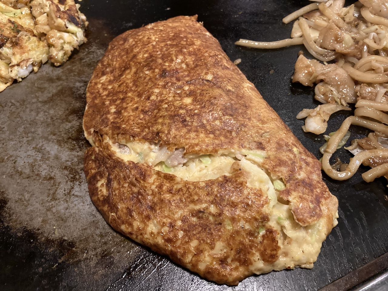 国道1号線沿いにあるお好み焼き屋さん。ここは、どろ焼きというふわふわのお好み焼きみたいなのを、出汁につけて食べるのが有名なお店。明石焼きみたいな味で、好きな人には好きな味かと。お好み焼きは、ごく普通のお好み焼きでした。土曜日に行きましたが、結構流行っていて、混雑していました。